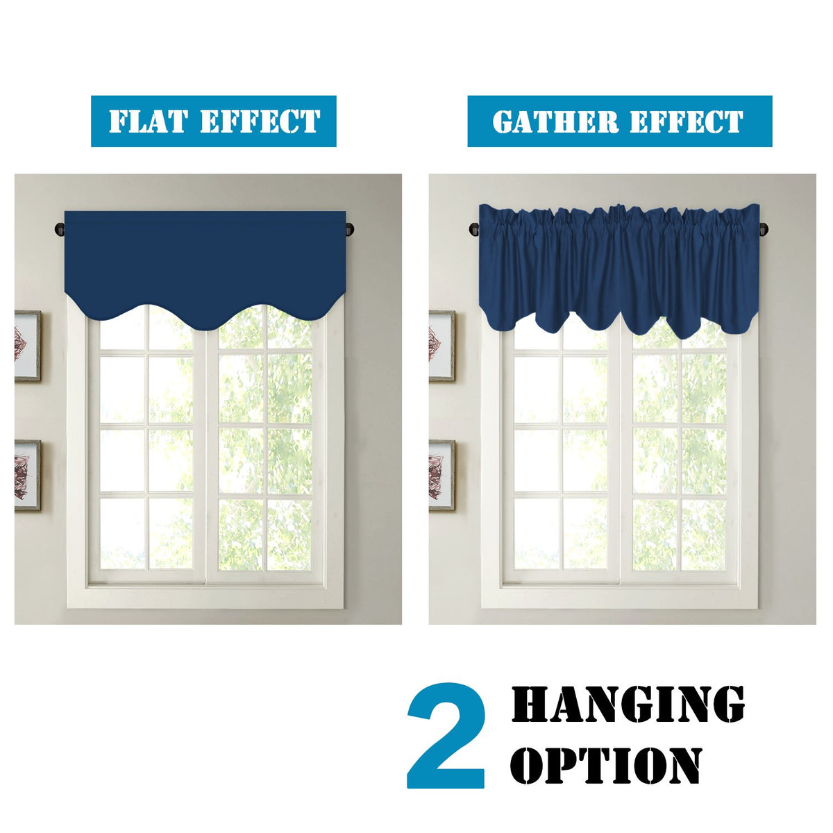 H.Versailtex Rod Pocket Blackout Curtain Valances Must Have Addition To Your Master Suite Or Guest Room, And Living Room. Hang These Energy Efficient Scalloped Valances Over Your Any Windows And Have A New Beautiful Look To Your Home D Cor.Performancesave Energy And Sleep Better At An Economical Price!Constructed With A Fine Weight, Microfiber Quality Face Ensures A Valance That Has A Soft Texture And Smooth Draping Effect.Improved Light Blocking And Thermal Insulating, Privacy Protecting, Noise Reducing, Significantly Save Energy And Money Year Round.Widely Use Forbedroom, Living Room, Dining Room, Kitchen, Bath, Landry, Foyermultiple Color Optionscream, Dove Gray, Light Wheat, Jet Black, Charcoal Gray, Turquoise Blue, Royal Blue, Coral, Sage, Aqua, Latte, Cardinal, Greyish White, Navy.Package Included2 Pieces Of 52 X 18 - Inch Valances Insidekindly Reminderif You Are Looking For Gather Effect Or For Wider Width Windows, Please Order Multiple Valances For A Custom Fit.