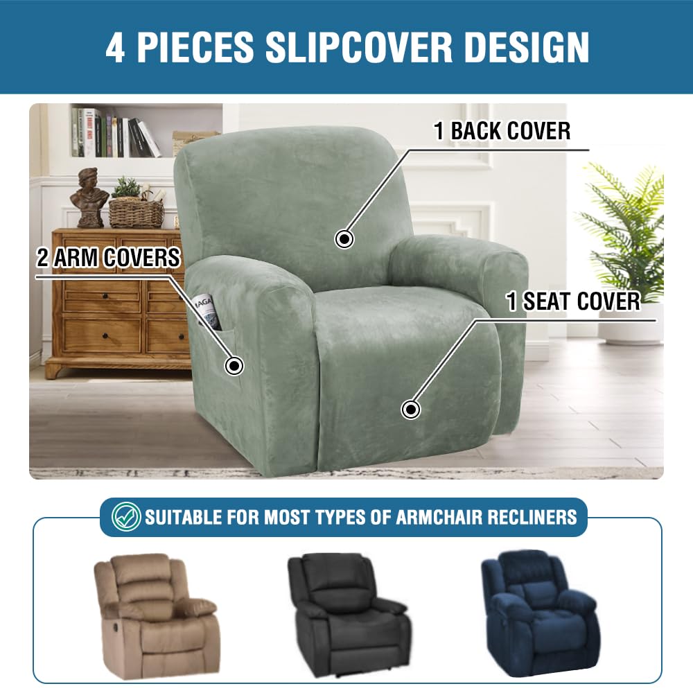 This Beautiful H.Versailtex Velvet Plush Furniture Slipcover 4 Pieces Makes For A Highly Valuable Addition To Any Living Room. It Is The Perfect Choice For All Those Who Are In Need Of Functionality And Utility Value, But Want To Avoid Compromising On Good Looks And Aesthetic Appeal.Measure Guideto Make Sure Getting The Perfect Fitting, Please Measure Your Furniture Before Ordering. This Cover Is Suitable For Both Cloth And Leather Reclinerlarge Size Can Fit Sofa Width Between 69-91 Inchesmedium Size Can Fit Sofa Width Between 48-65 Inchessmall Size Can Fit Sofa Width Between 27-39 Incheshigh Featuresmade Of Durable And Gentle Velvet Plush Fabric, Soft Rich And Luxurious.Has A Footrest That Has Pleats At The Front Corners To Help The Fabric Wrap Beneath The Furniturealong With The Pleats There Are Two Elastic Loops That Can Be Tied Beneath The Footrestthe Entire Base Including Footrest Has Elastic Sewn To The Perimeter To Help Wrap Under The Furnitureeasy To Install, With Instructional Tags To Seamlessly Guide You Through The Installation Processmultiple Choicefit Manual And Electric Styles Reclinerscolors: Available In Solid Grey / Brown / Navy / Ivory / Taupe / Camel / Peacock Blue / Black / Off White / Deep Teal / Burgundy / Stone Bluecare Instructionmachine Washing In Cold, Do Not Bleach, Tumble Dry Low And Low Iron If Needed.Due To Different Monitor Or Screens, Colors May A Slightly Different As You See, But Never Change Itself Attractions