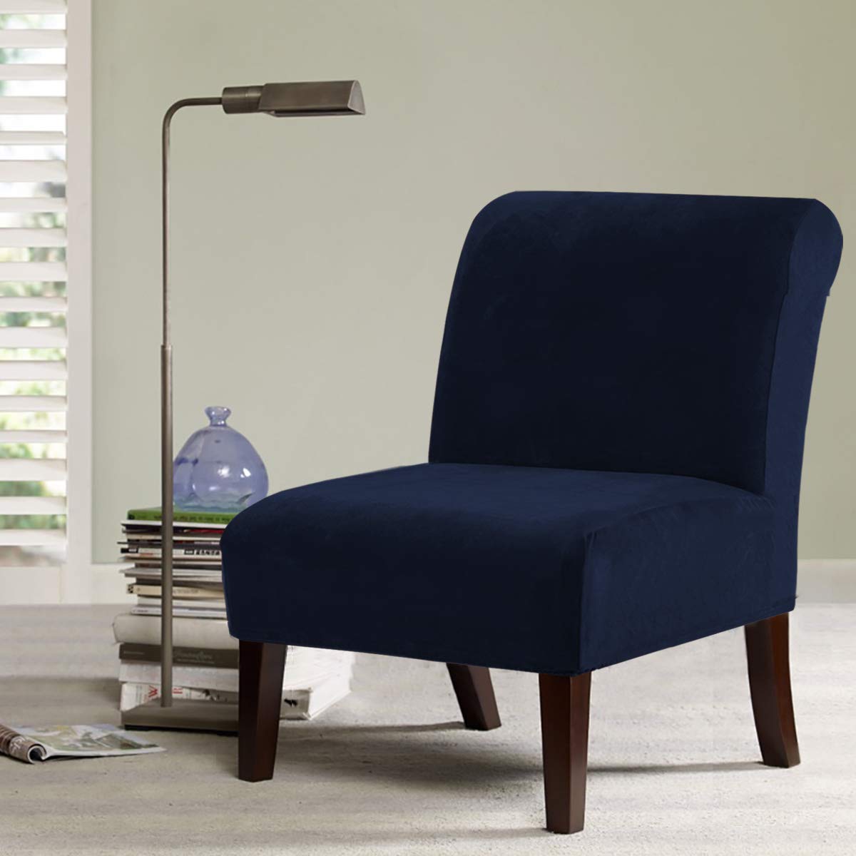 H.Versailtex Armless Accent Chair Covers Thick Velvet Armless Chair Slipcovers High Stretch Chair Covers For Living Room Hotel Machine Washable Furniture Protector With Elastic Bottom, Navy