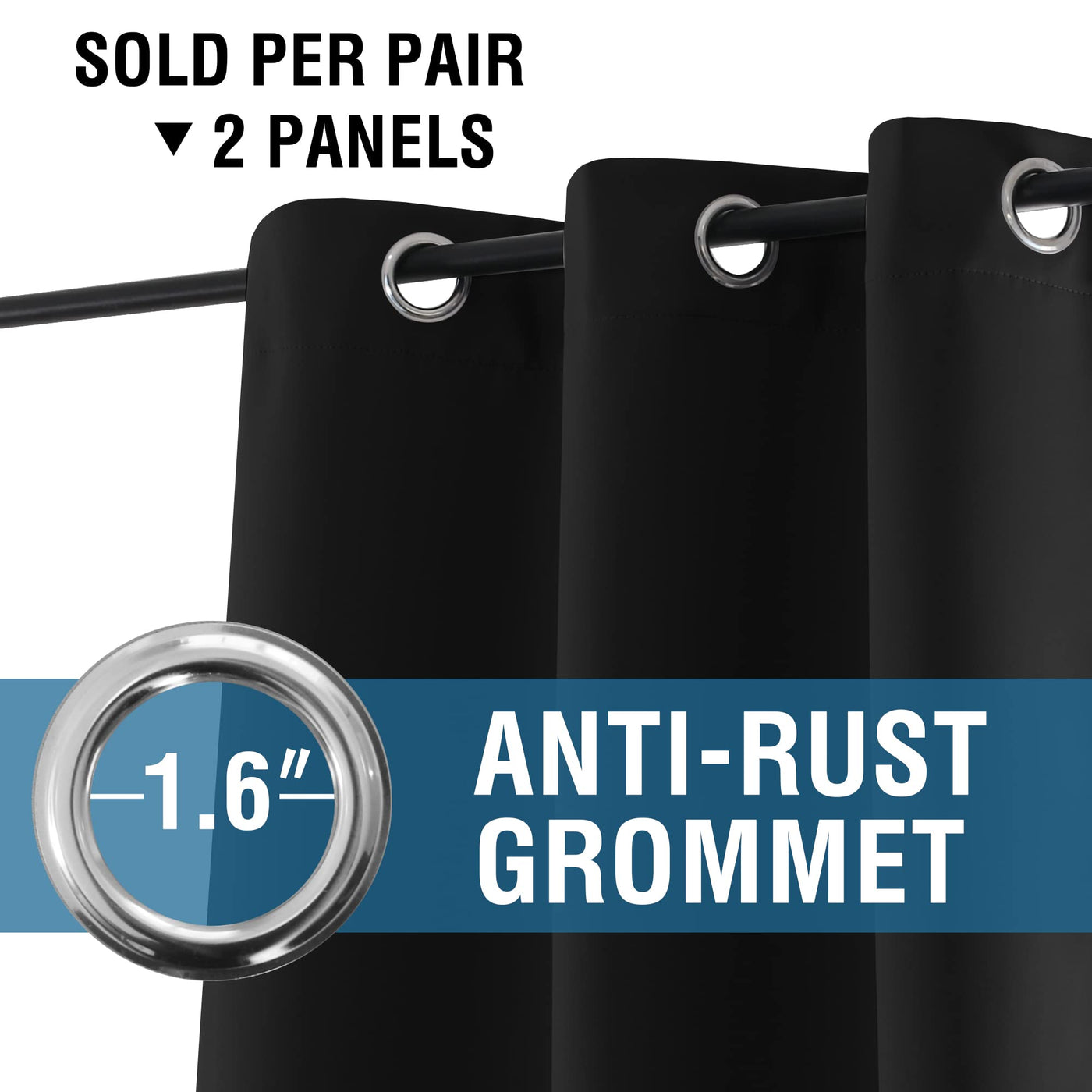 H.Versailtex Blackout Curtains For Bedroom Thermal Insulated Room Darkening Living Room Curtains 72 Inch Long Grommet Privacy Protection Window Curtain Panels/Drapes For Nursery, 2 Panels,Jet Black