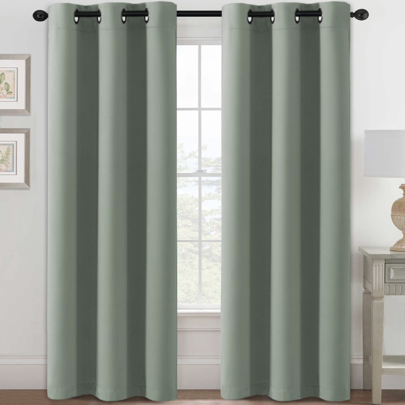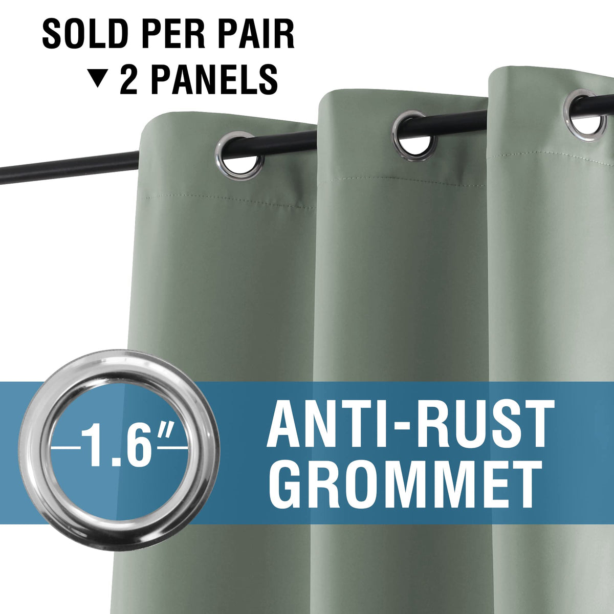 H.Versailtex Blackout Curtains For Bedroom Thermal Insulated Room Darkening Living Room Curtains 84 Inch Long Grommet Privacy Protection Window Curtain Panels/Drapes For Nursery,2 Panels,Light Sage