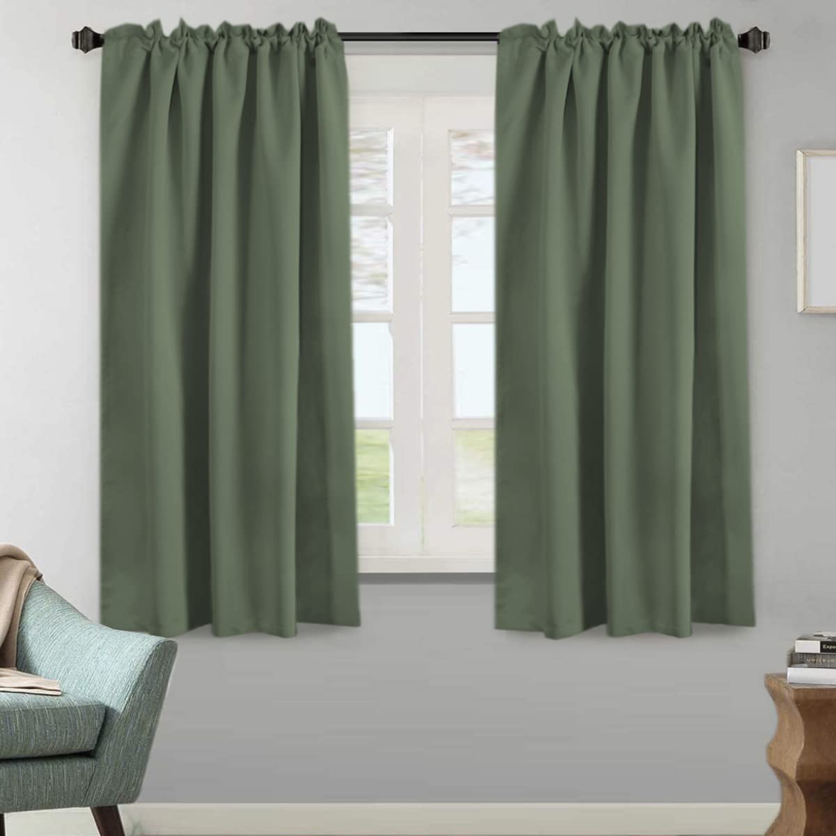 H.Versailtex Blackout Curtains Thermal Insulated Window Treatment Panels Room Darkening Blackout Drapes For Living Room Back Tab/Rod Pocket Bedroom Draperies (2 Panels, Bronze Green, 52 X 63 Inch)