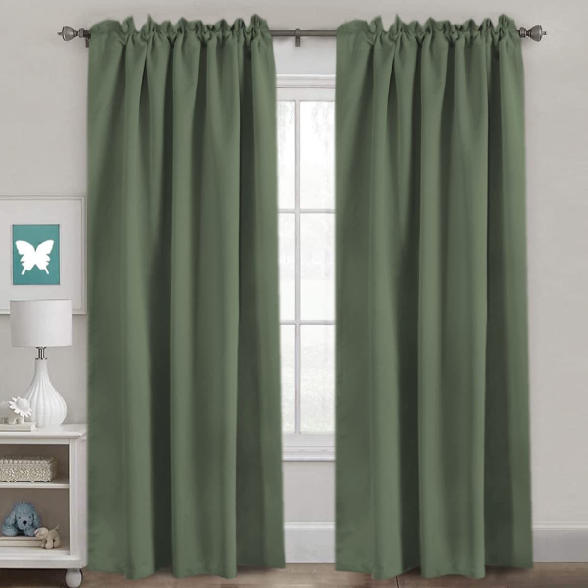 H.Versailtex Blackout Curtains Thermal Insulated Window Treatment Panels Room Darkening Blackout Drapes For Living Room Back Tab/Rod Pocket Bedroom Draperies (2 Panels, Bronze Green, 52 X 84 Inch)