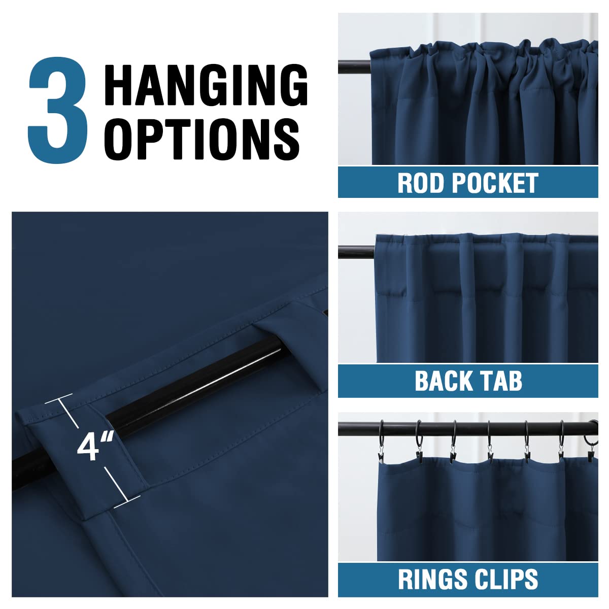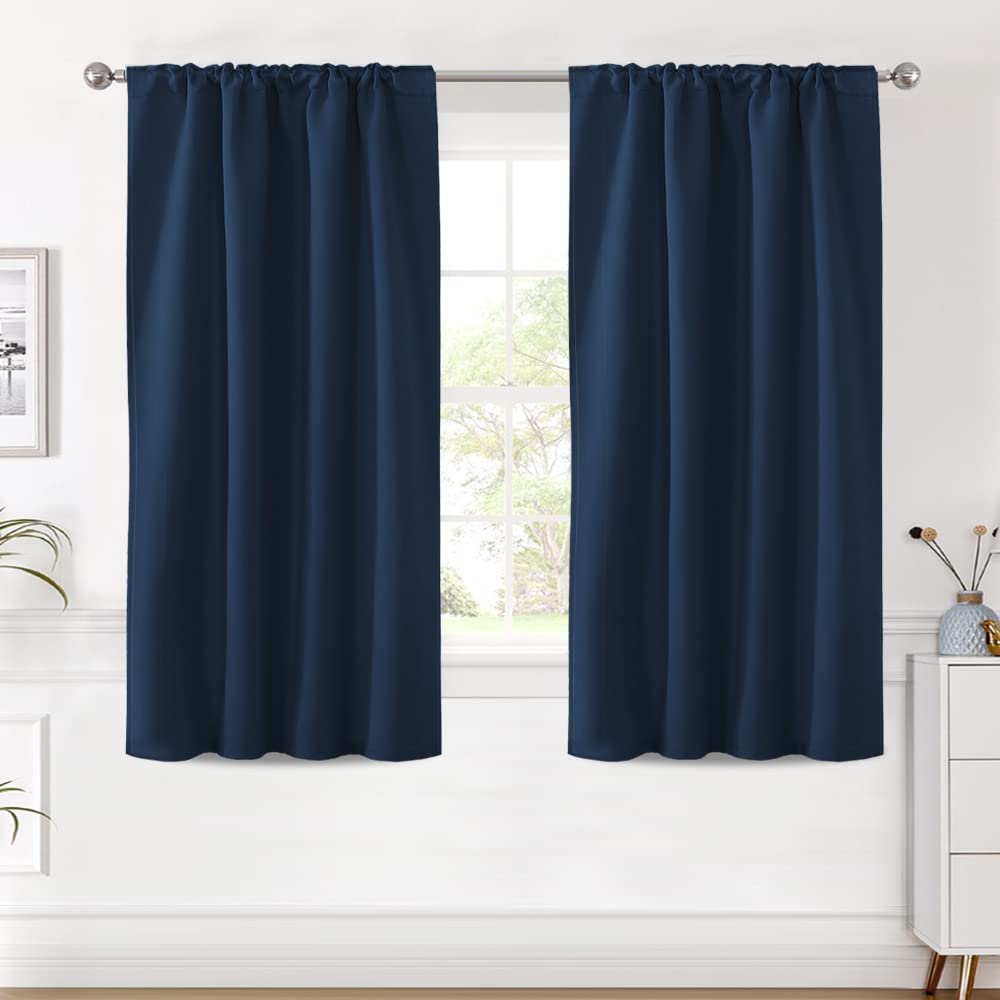 H.Versailtex Blackout Curtains Thermal Insulated Window Treatment Panels Room Darkening Blackout Drapes For Living Room Back Tab/Rod Pocket Bedroom Draperies (2 Panels, Navy Blue, 42 X 54 Inch)