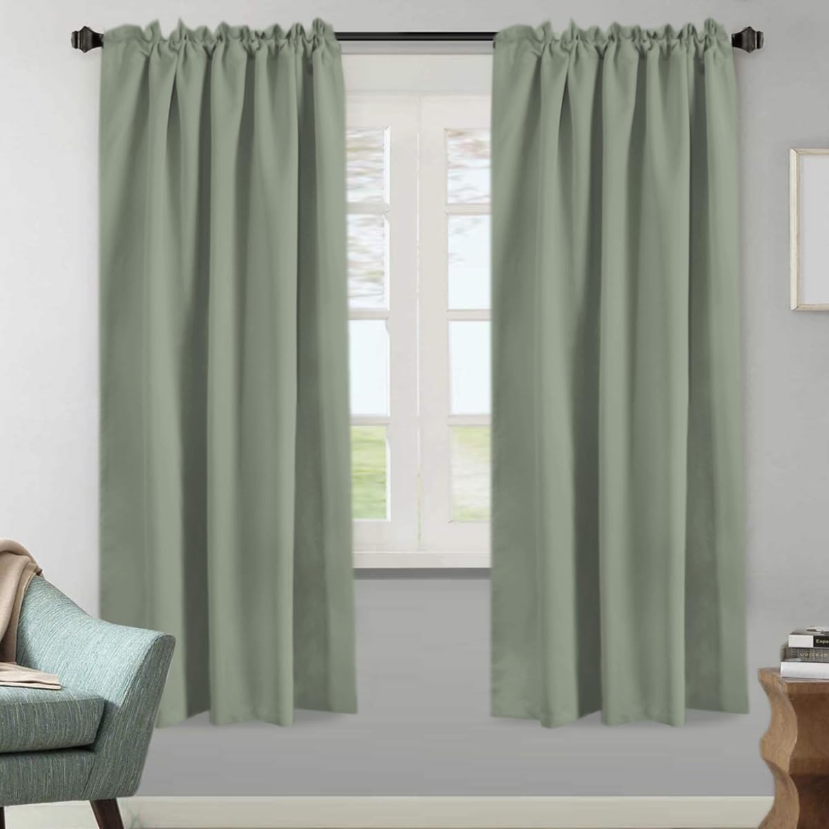 H.Versailtex Blackout Curtains Thermal Insulated Window Treatment Panels Room Darkening Blackout Drapes For Living Room Back Tab/Rod Pocket Bedroom Draperies (2 Panels, Sea Grass, 52 X 72 Inch)
