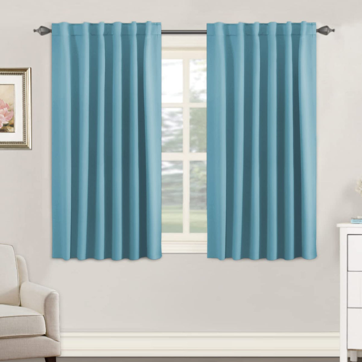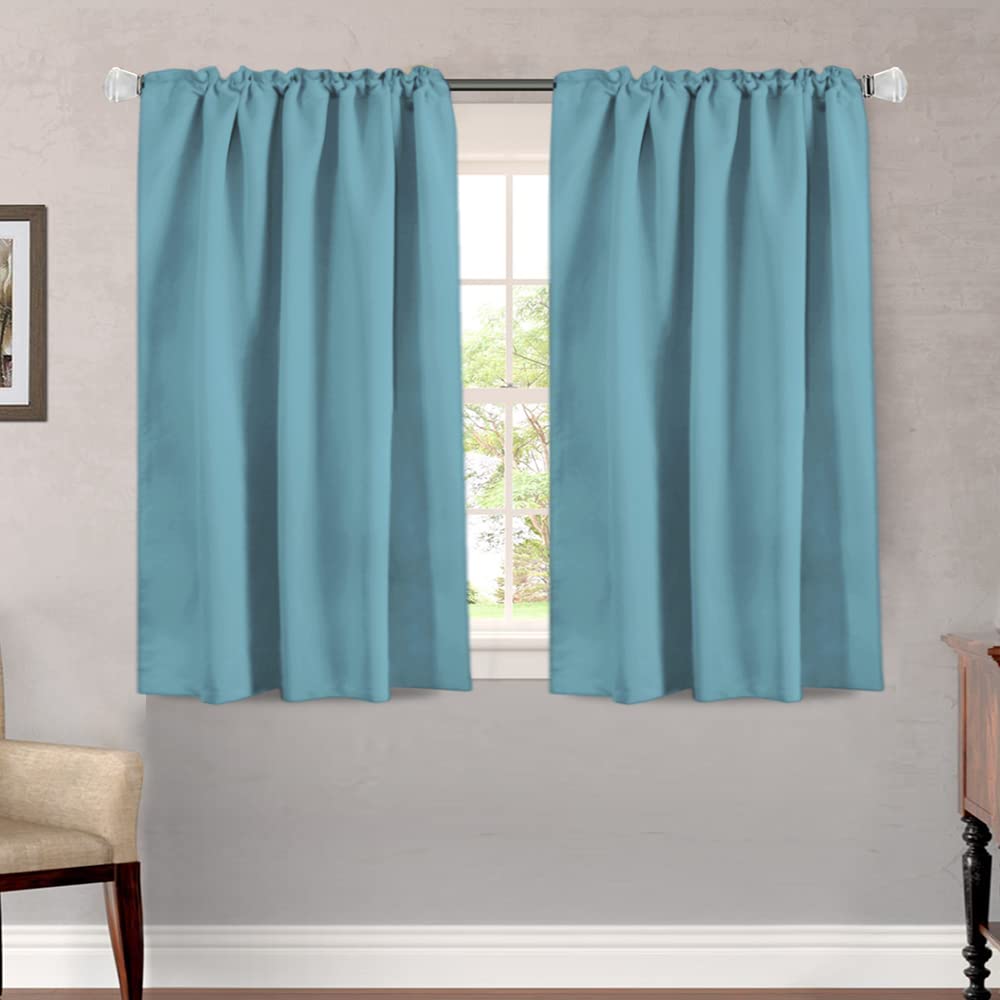 H.Versailtex Blackout Curtains Thermal Insulated Window Treatment Panels Room Darkening Blackout Drapes For Living Room Back Tab/Rod Pocket Bedroom Draperies, 52 X 45 Inch, Aqua, 2 Panels