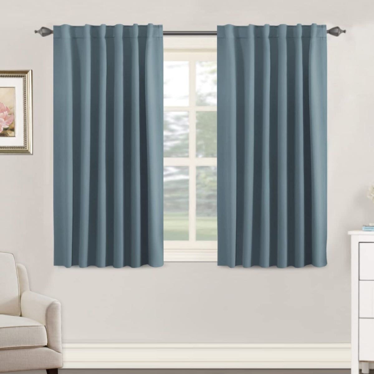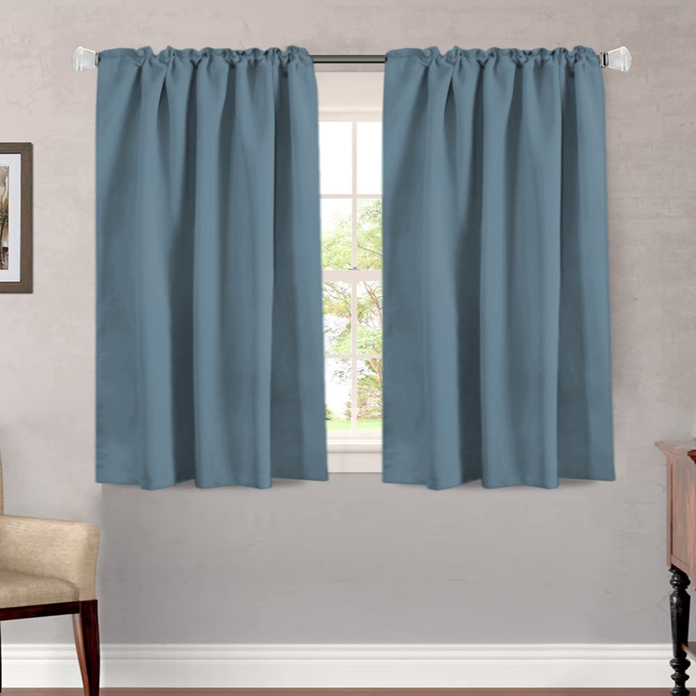 H.Versailtex Blackout Curtains Thermal Insulated Window Treatment Panels Room Darkening Blackout Drapes For Living Room Back Tab/Rod Pocket Bedroom Draperies, 52 X 45 Inch, Stone Blue, 2 Panels