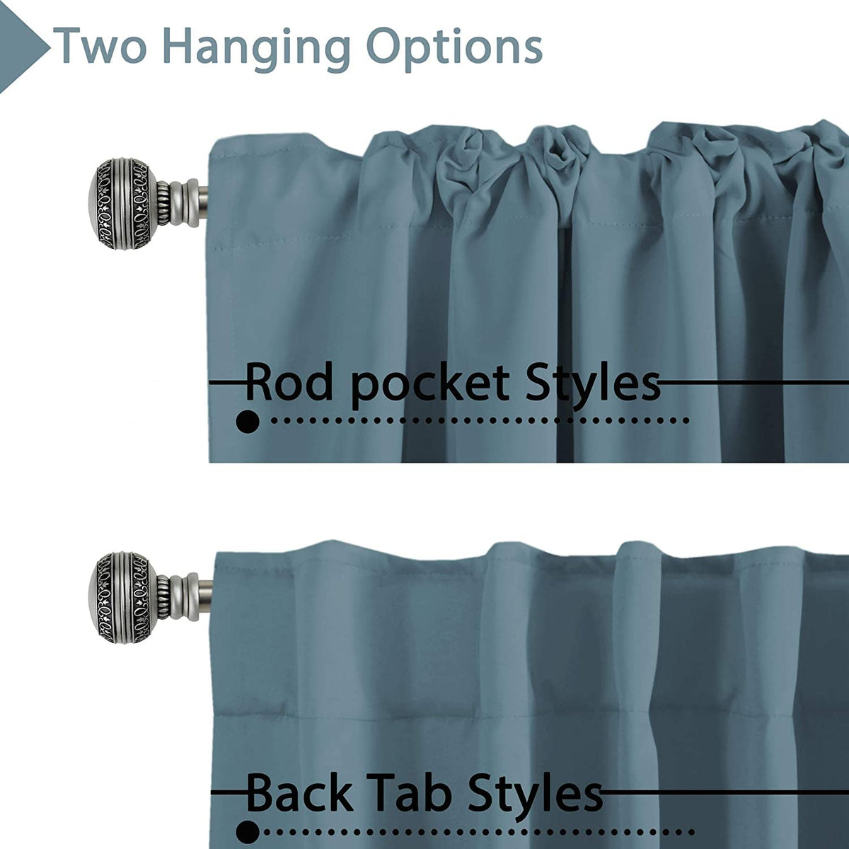 Slide a curtain rod through the back tabs, or thread it through the rod pocket for a more gathered look.