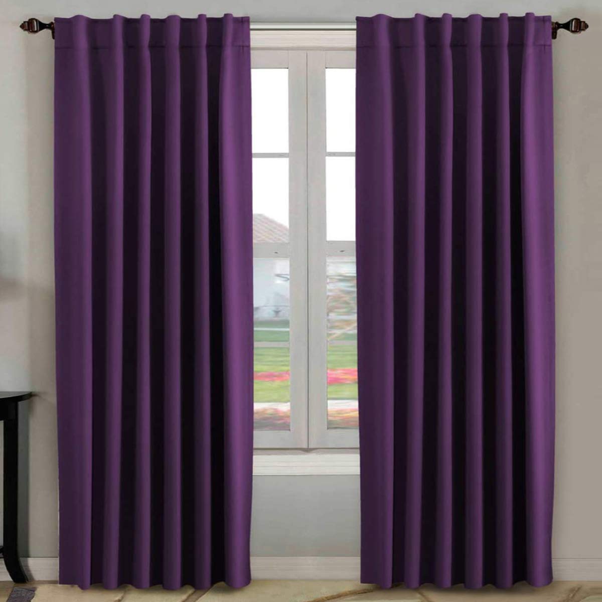 H.Versailtex Blackout Curtains Thermal Insulated Window Treatment Panels Room Darkening Blackout Drapes For Living Room Back Tab/Rod Pocket Bedroom Draperies, 52 X 96 Inch, Plum Purple, 2 Panels