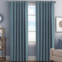 Slide a curtain rod through the back tabs, or thread it through the rod pocket for a more gathered look.