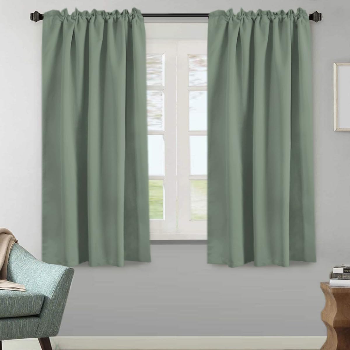 H.Versailtex Blackout Curtains Thermal Insulated Window Treatment Panels Room Darkening Curtains For Bedroom Back Tab/Rod Pocket Small Window Curtains (2 Panels, Green Bay, 52 X 63 Inch)