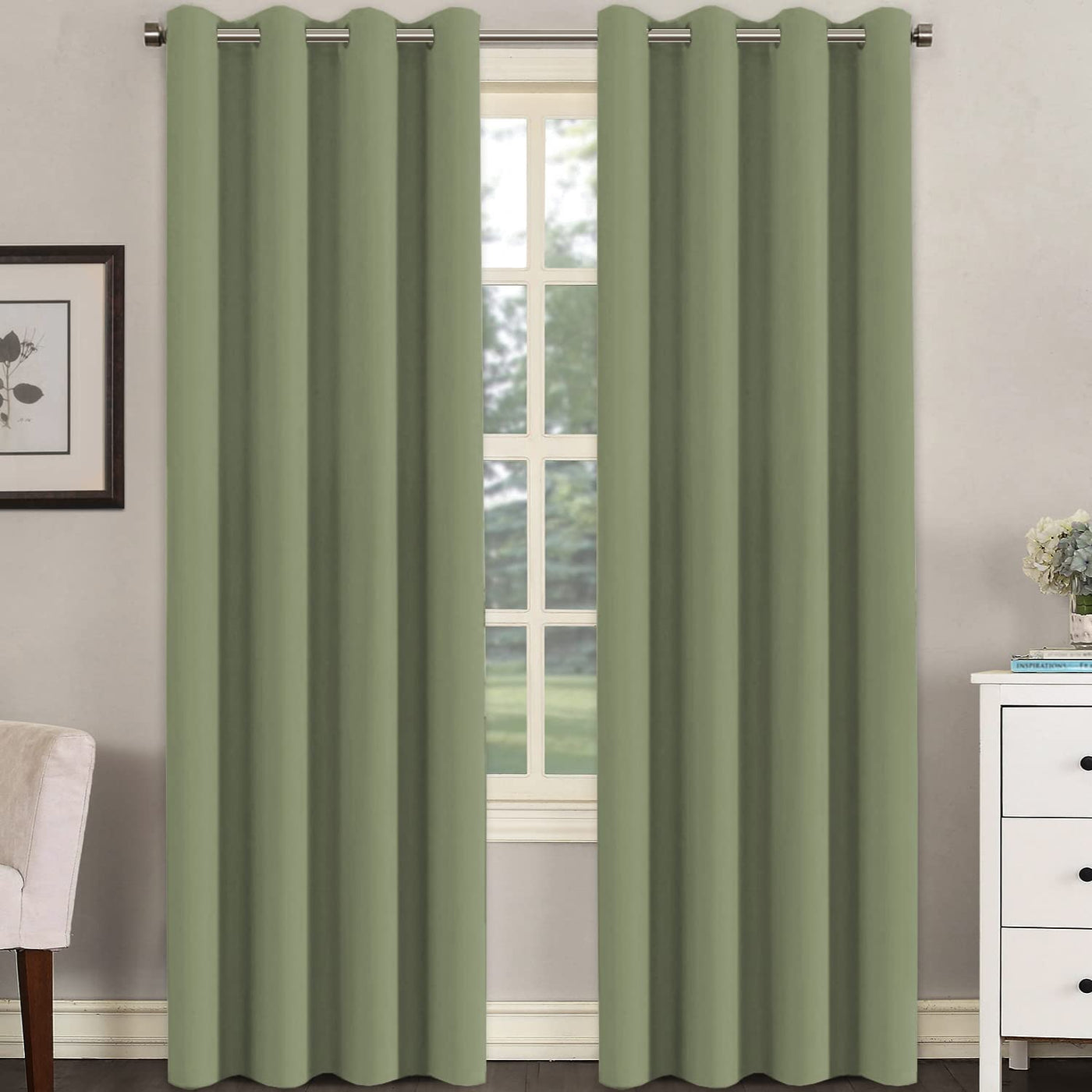 H.Versailtex Blackout Window Treatment Curtains/Panels, Thermal Insulated Room Darkening Solid Grommet Drapes For Bedroom/Living Room Window (52 Inch By 108 Inch, Sage, Set Of 2)