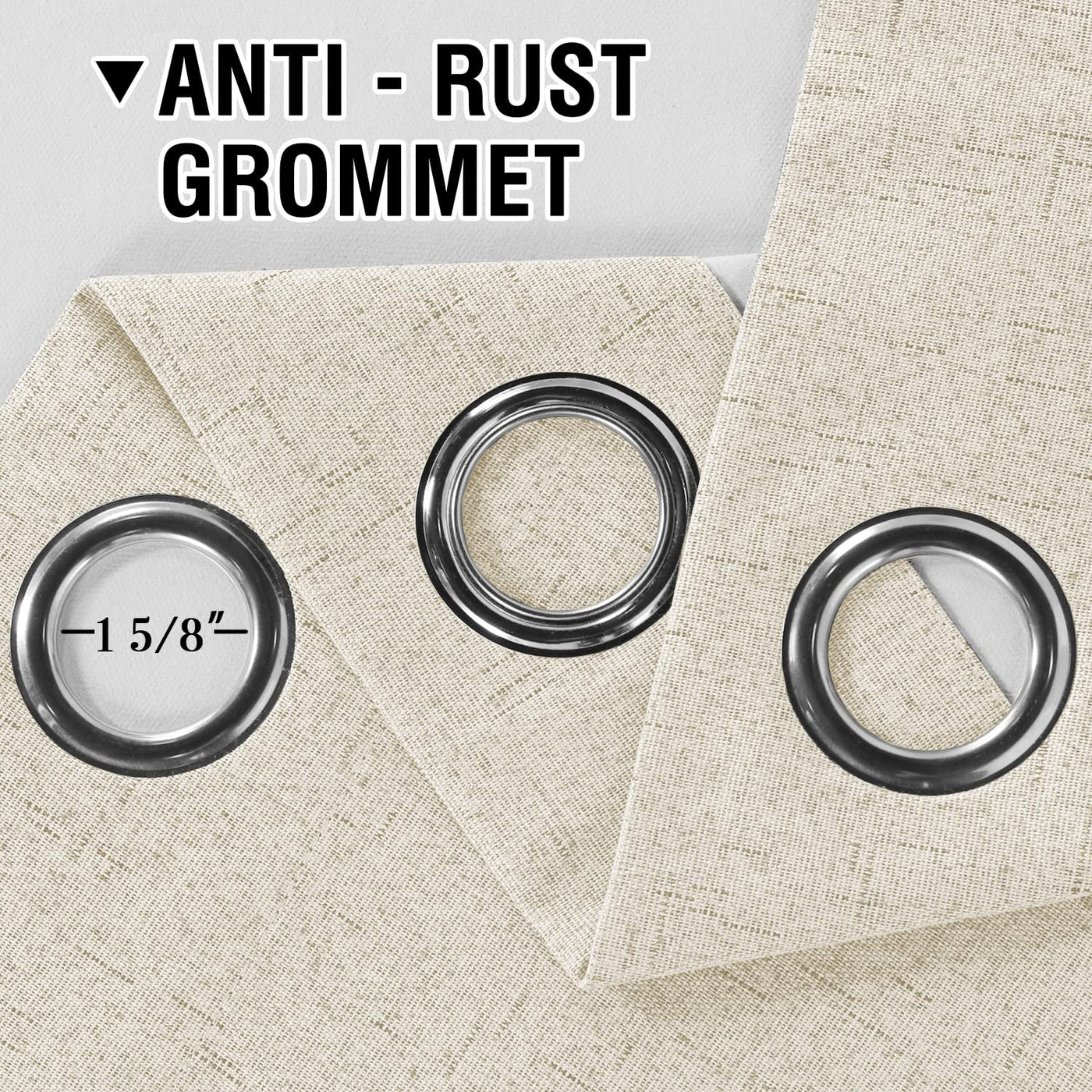 Q: What type of rod can I use with these curtains?A: These curtains come with 8 anti-rust grommets that fit well with curtain rods up to 1 1/2 inches in diameter, making them versatile for various rod styles.