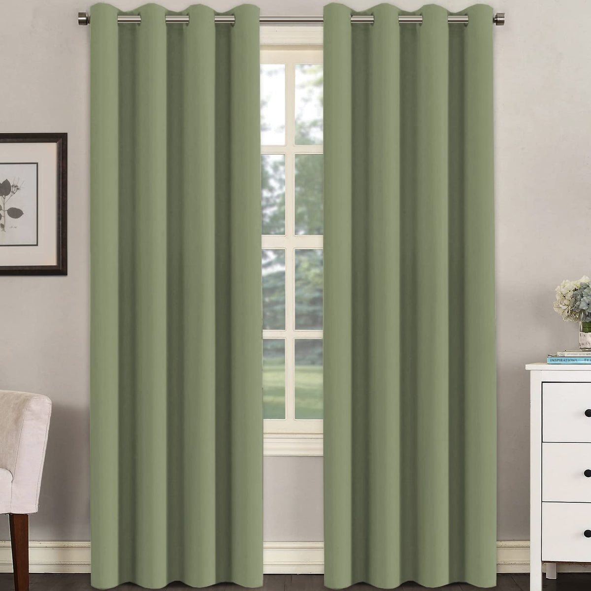 H.Versailtex Premium Blackout Thermal Insulated Room Darkening Curtains For Bedroom/Living Room - Classic Grommet Top (2 Panels, Sage, 52 Inch By 96 Inch)