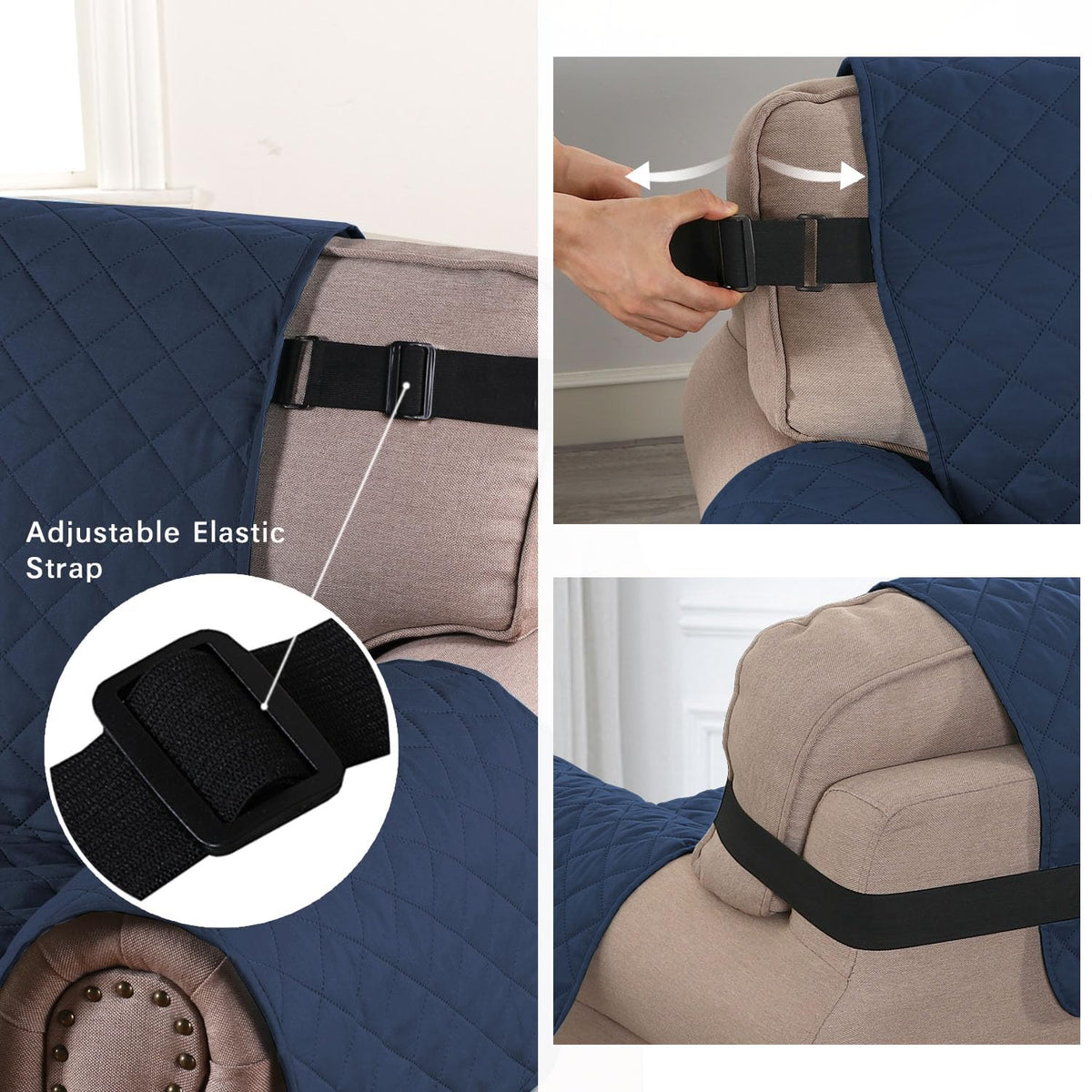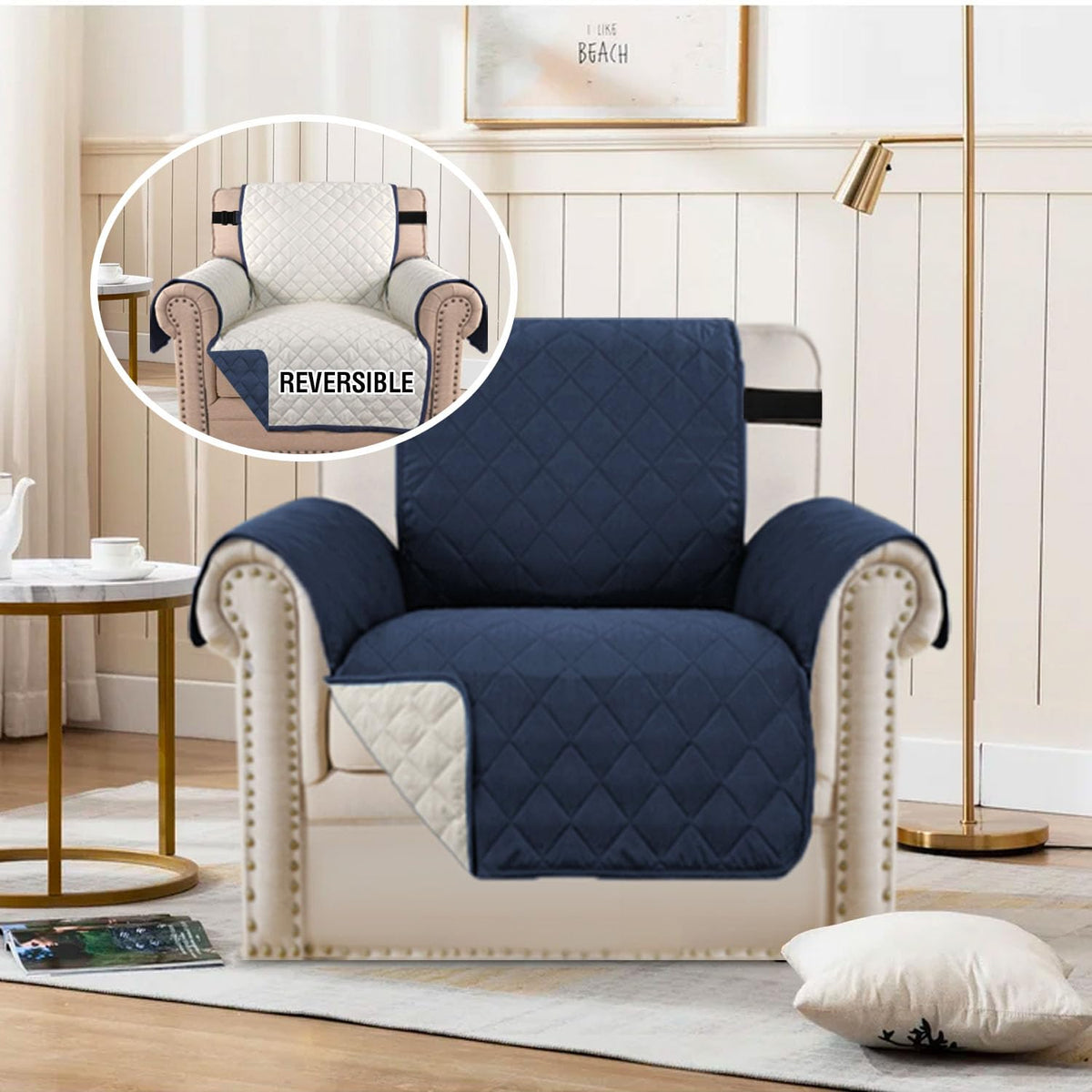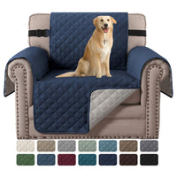 H.Versailtex Reversible Chair Cover For Dogs Pet Water Repellent Sofa Cover Chair Slipcover 2' Thick Strap Slip-Resistant Chair Protector Soft Quilted Seat Width Up To 21'(Armchair, Navy/Beige)
