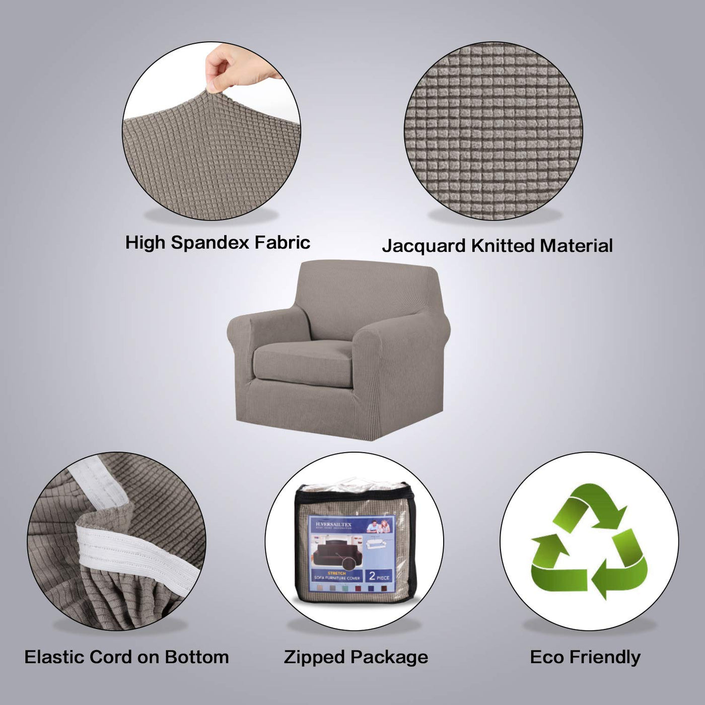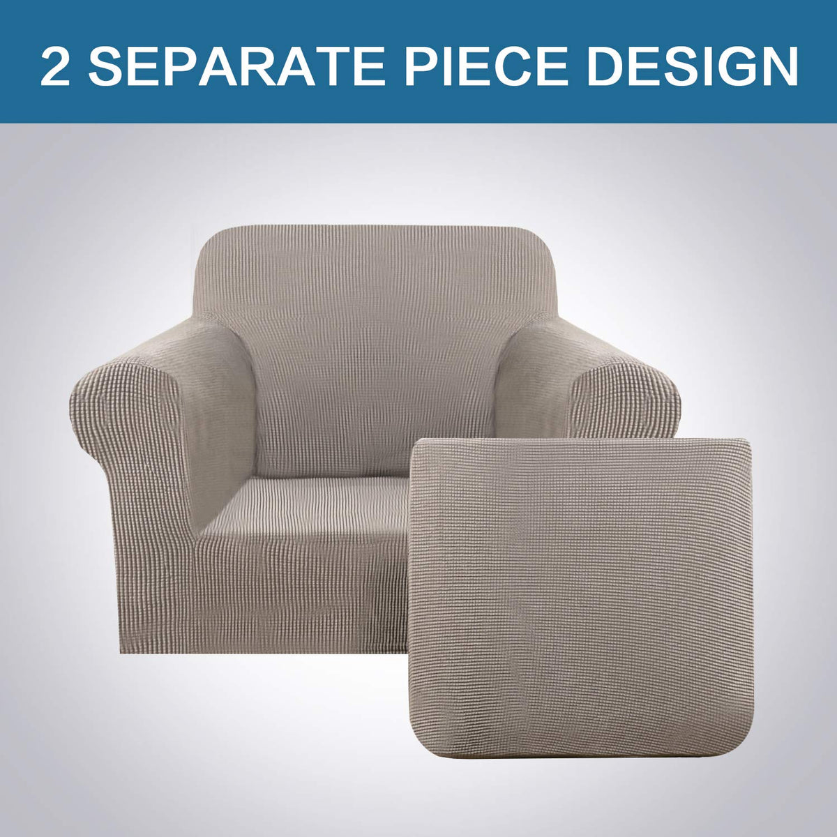 H.Versailtex Stretch Chair Slipcovers 2 Pieces Armchair Cover Furniture Protector Chair Covers For Living Room Fit Chair Width Up To 47 Inches, Jacquard Spandex High Spandex Fabric(Chair, Taupe)