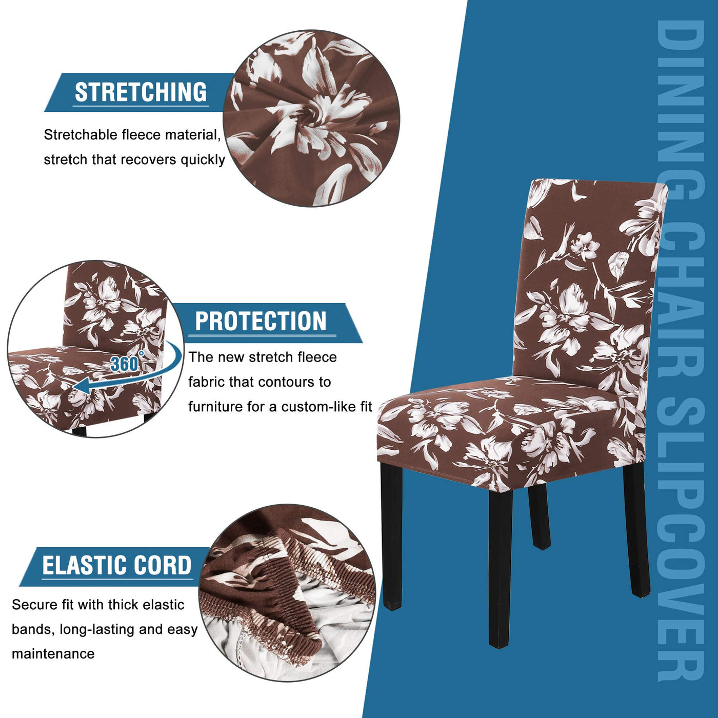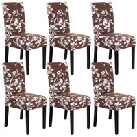 H.Versailtex Stretch Dining Chair Covers Set Of 6 Chair Covers For Dining Room Parsons Chair Slipcover Chair Protectors Covers Dining, Feature Modern Floral Printed Design, Chocolate
