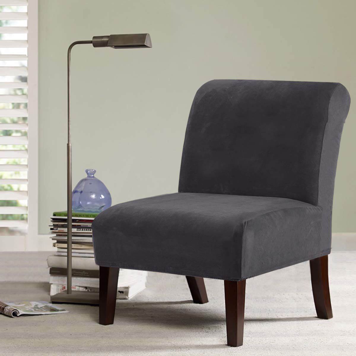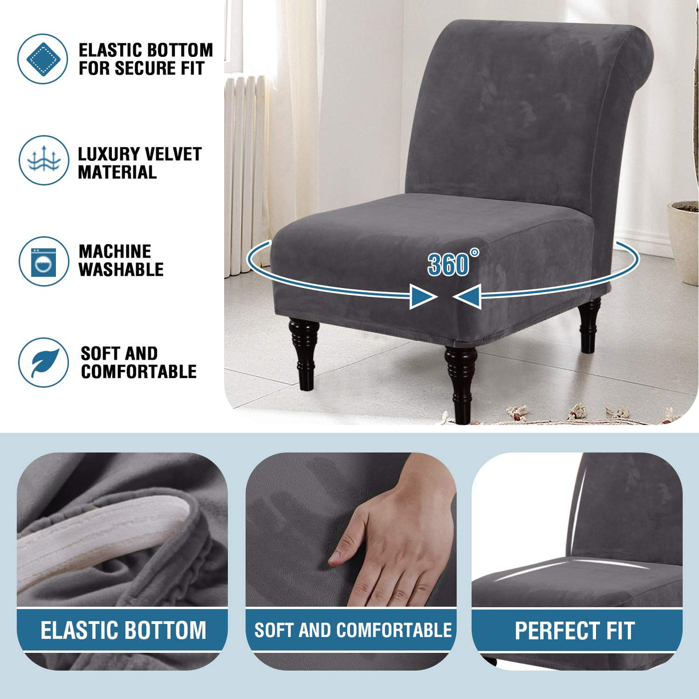 H.Versailtex Velvet Accent Chair Covers High Stretch Armless Chair Covers For Living Room Luxury Thick Velvet Chair Slipcovers Modern Furniture Protector With Elastic Bottom, Machine Washable, Grey