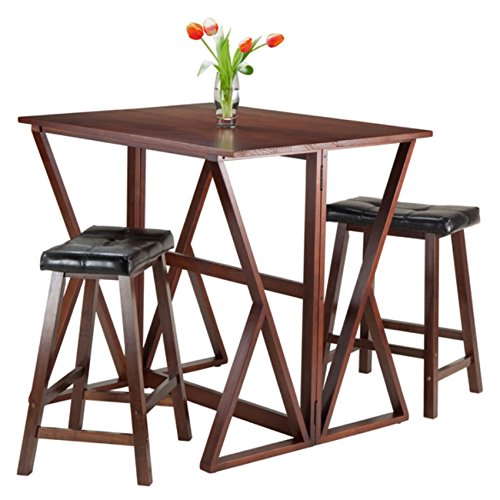 Harrington 3-Piece Drop Leaf Table and Stools Set | Solid Wood | Walnut Finish | 39.37' W x 31.5' D x 36.22' H | Assembly Required