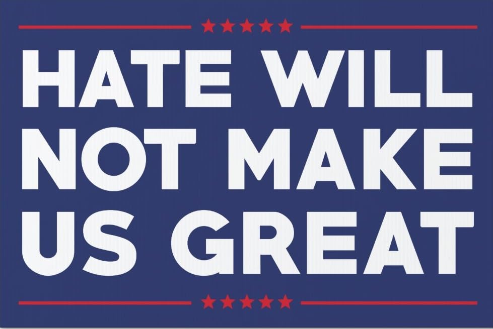 Hate Will Not Make Us Great - No Maga - Anti-Trump Yard Sign Size: 24 Inches In Length X 18 Inches In Height. Made In The Usa!