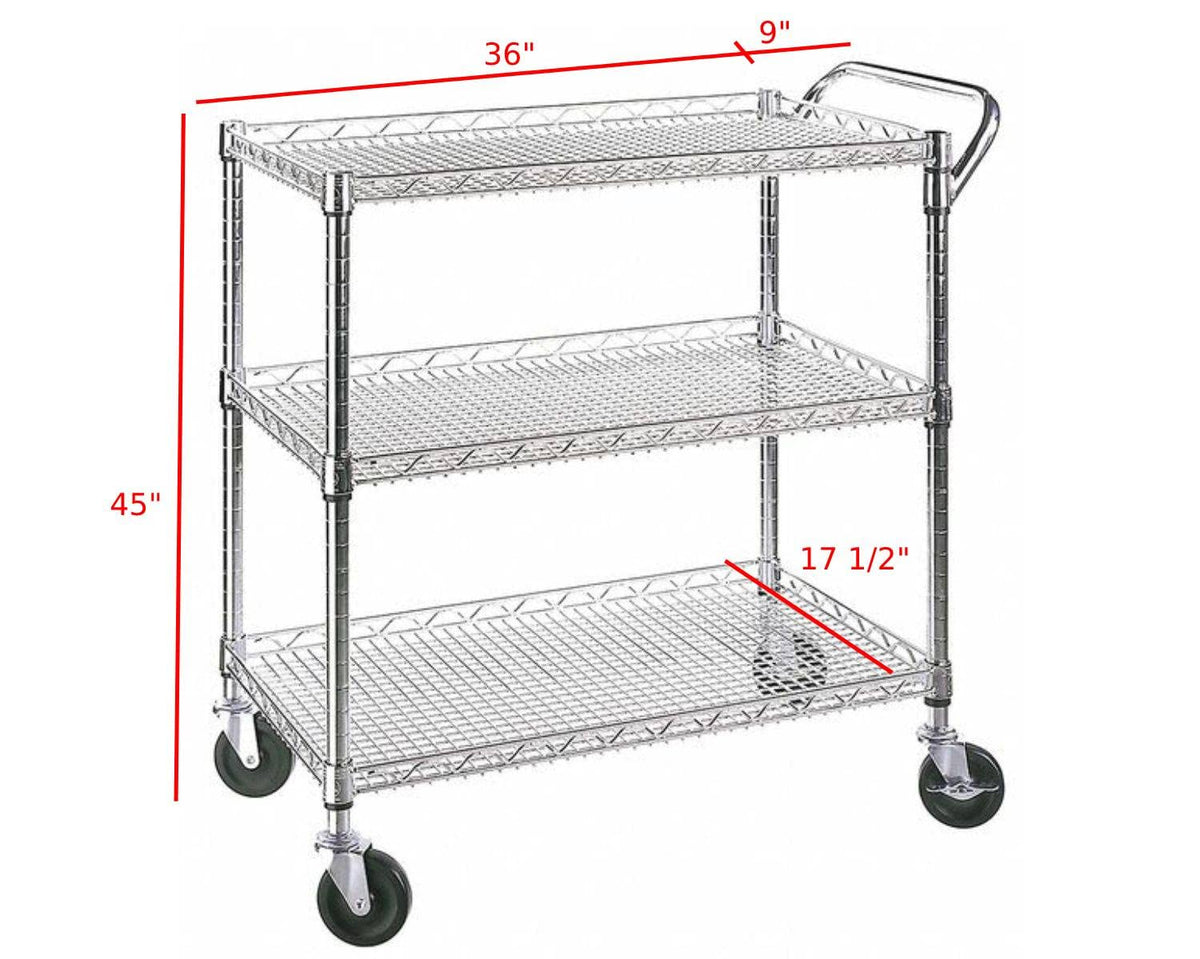 Heavy Duty 3 Tier Rolling Utility Cart Kitchen Cart On Wheels Metal Serving Cart Commercial Grade With Wire Shelving And Handle Bar For Kitchen Office Hardware