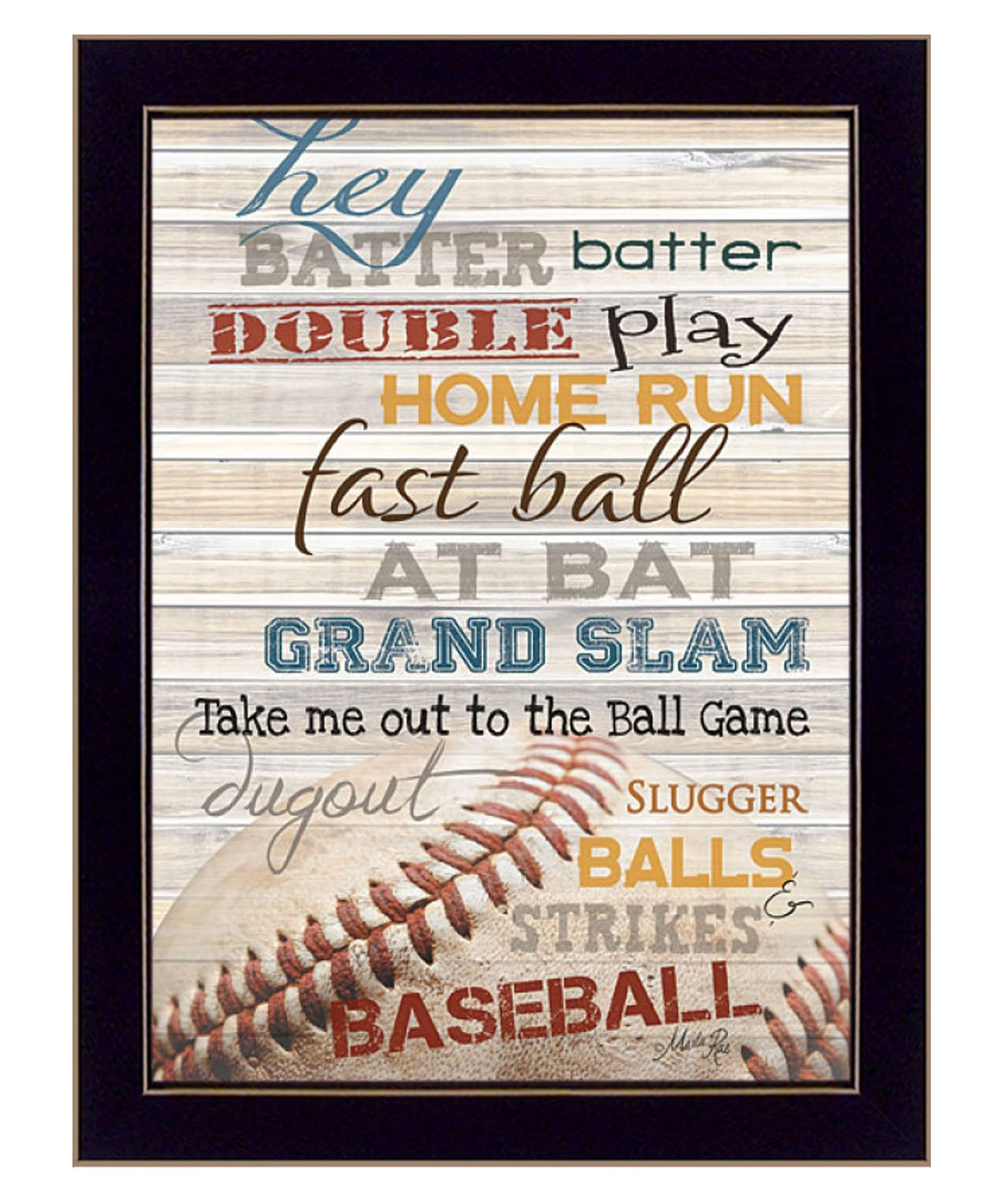 Bring some sizzle to your space with this eye-catching hey batter batter 3 black framed print wall art. This print is a visual artistic expression that allows you to decorate your space in style. Reproduced for you on wood, this hanging accent will be a trendy walls and fashionable way to dress your in a rustic and modern farmhouse vibe. Adding this hanging wall to your space to make your room feel more attractive. your space with this art that brings color and dimension to your walls. 18' H x 14' W x 1' D.
