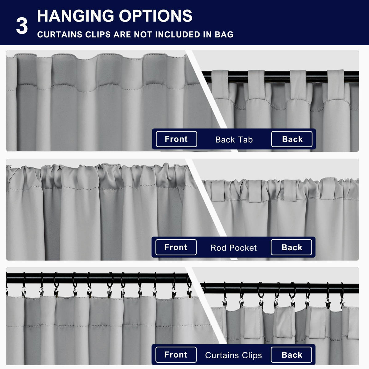 Hiasan Back Tab Blackout Curtains 2 Panels, Rod Pocket Curtains For Bedroom, Room Darkening Curtains For Living Room, Thermal In
