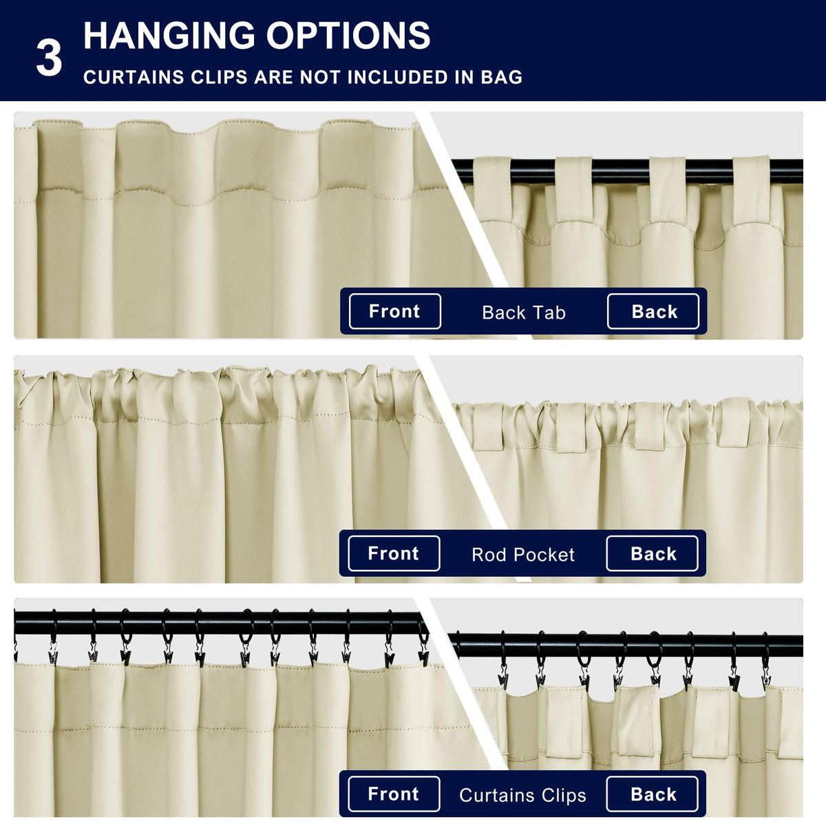 Hiasan Back Tab Room Darkening Curtains 2 Panels, Rod Pocket Biscotti Beige Blackout Curtains For Bedroom Living Room, Thermal I