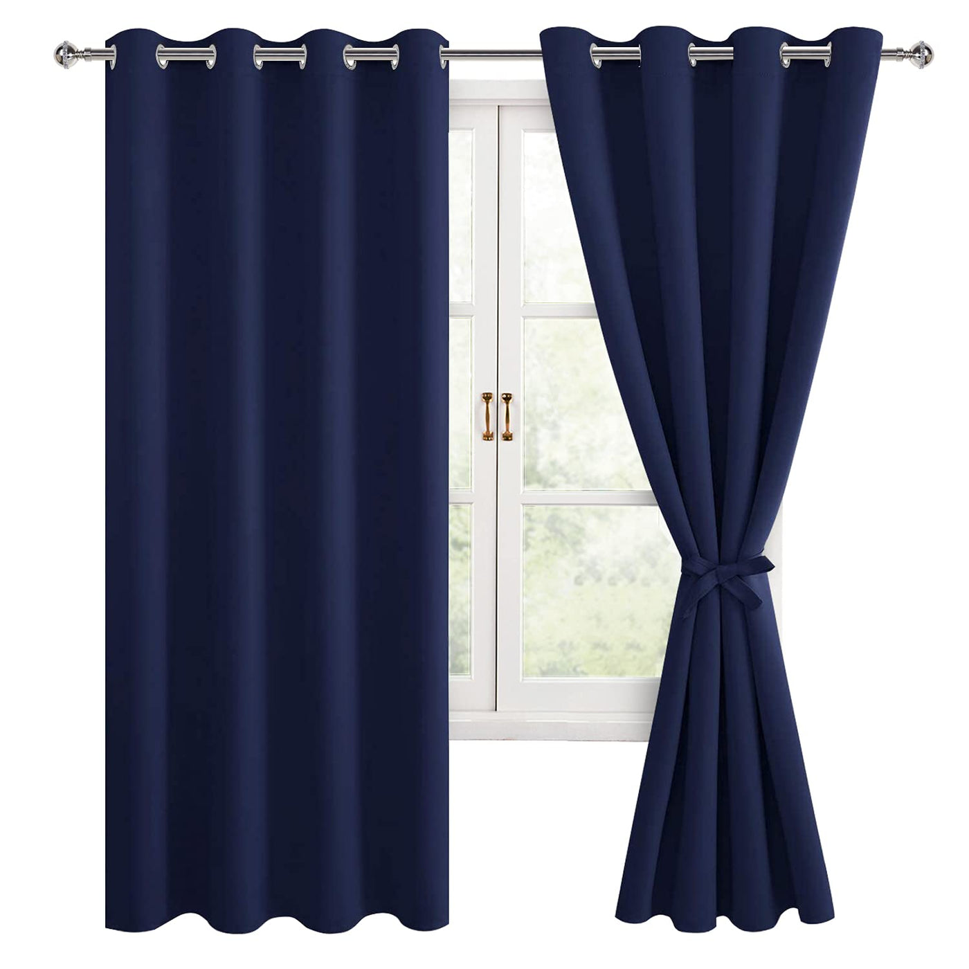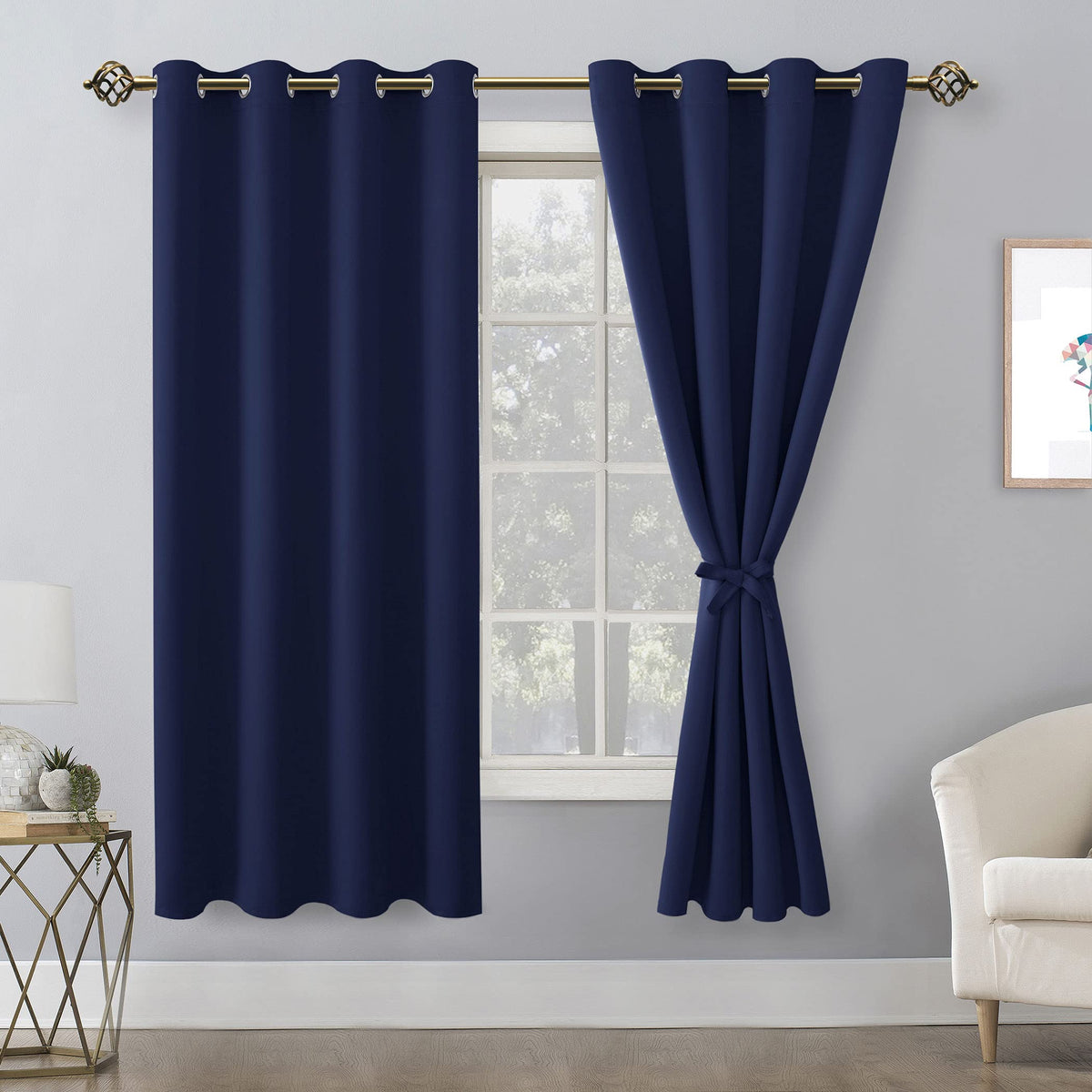 Hiasan Blackout Curtains For Bedroom, 52 X 63 Inches Length - Thermal Insulated & Light Blocking Window Curtains For Living Room, 2 Drape Panels Sewn With Tiebacks, Navy Blue