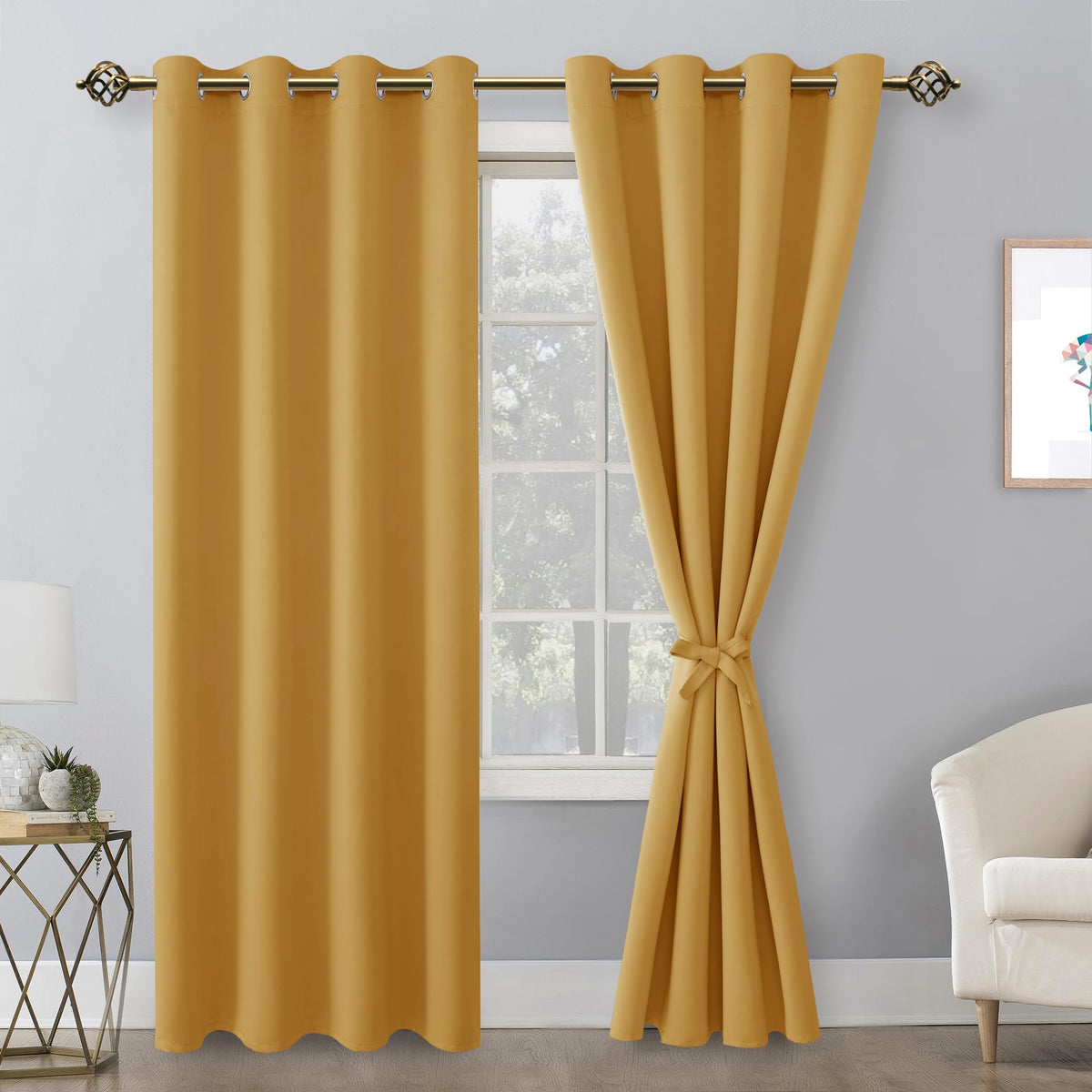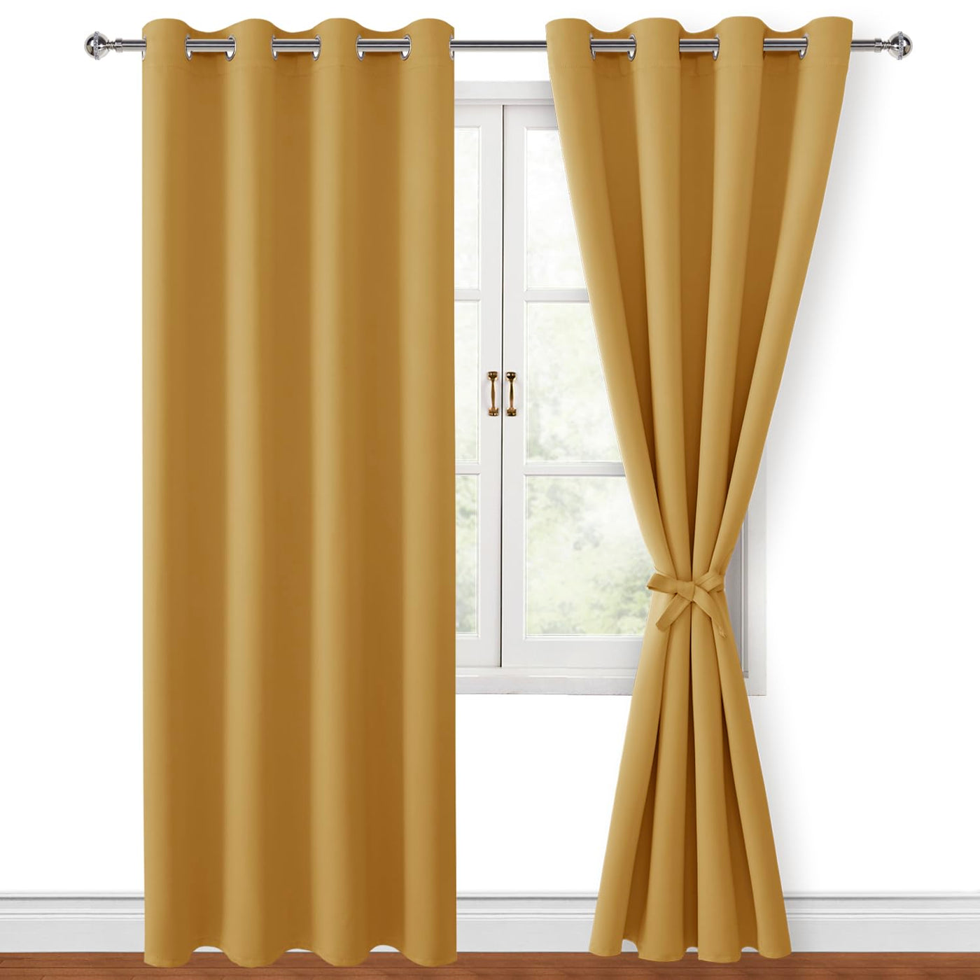 Blackout curtains with 2 tiebacks, help keep your curtains open with minimal effort. You can reduce extra expenses for your window treatments. To tie the two ends of the tiebacks together and then adjust it according to the thickness of your curtain. These new version blackout curtains offer a contemporary solution for holding drapes without the need for tools or drilling holes into trim or walls.