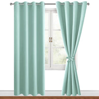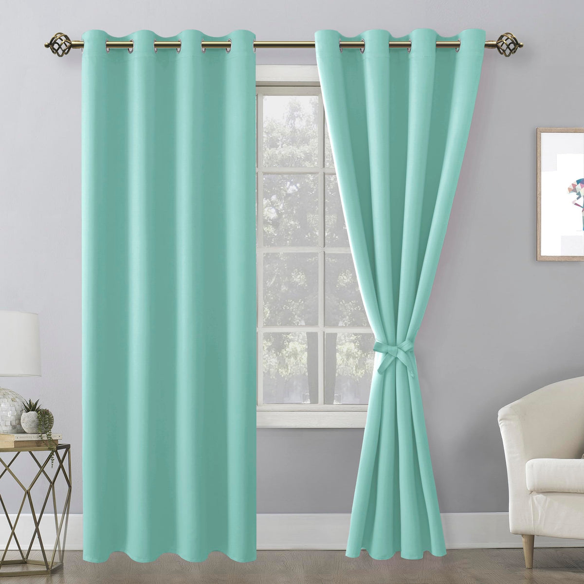 Hiasan Blackout Curtains For Bedroom, 52 X 96 Inches Long - Thermal Insulated & Energy Saving Window Curtains For Living Room, 2 Drape Panels Sewn With Tiebacks, Aqua