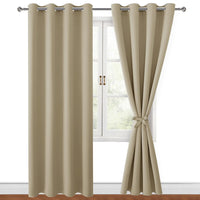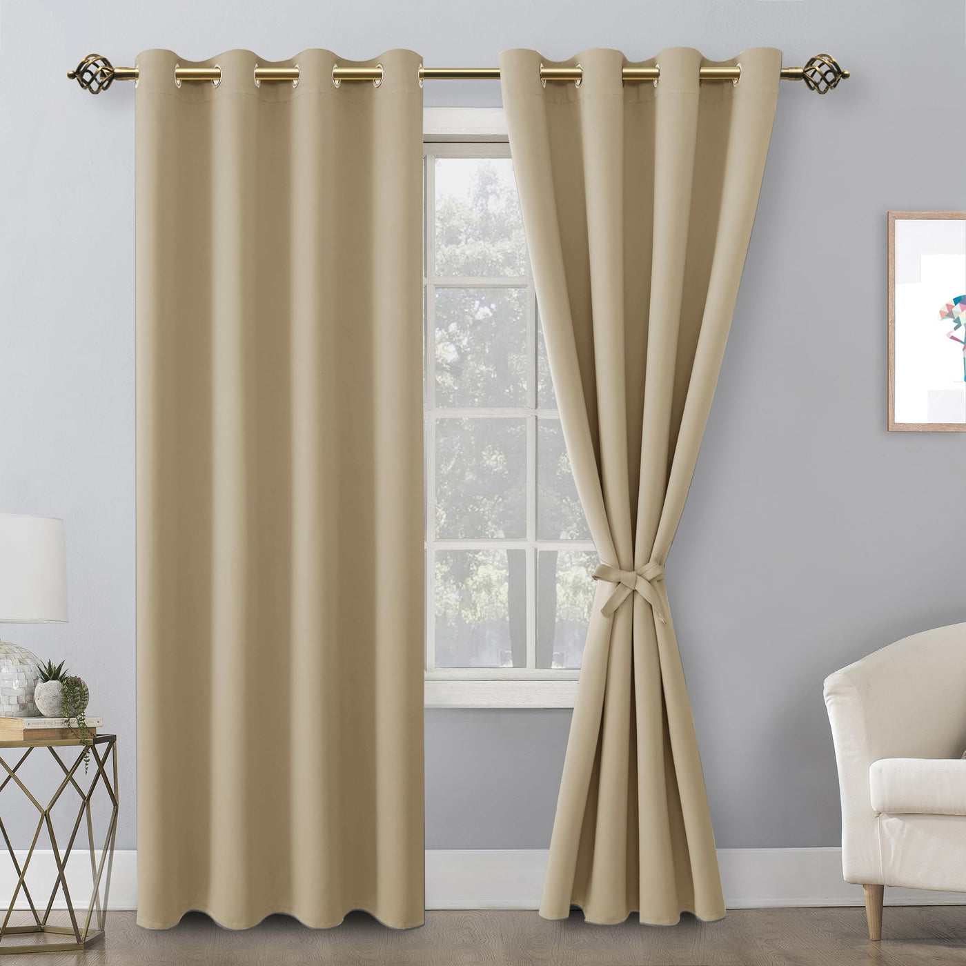 Hiasan Blackout Curtains For Bedroom, 52 X 96 Inches Long - Thermal Insulated & Light Blocking Window Curtains For Living Room, 2 Drape Panels Sewn With Tiebacks, Taupe