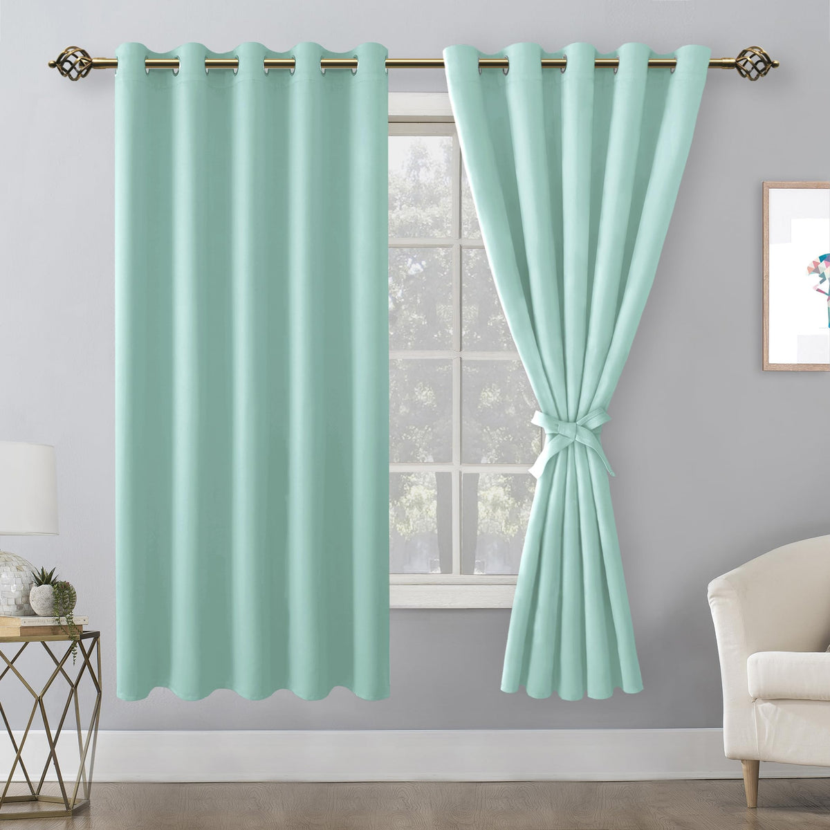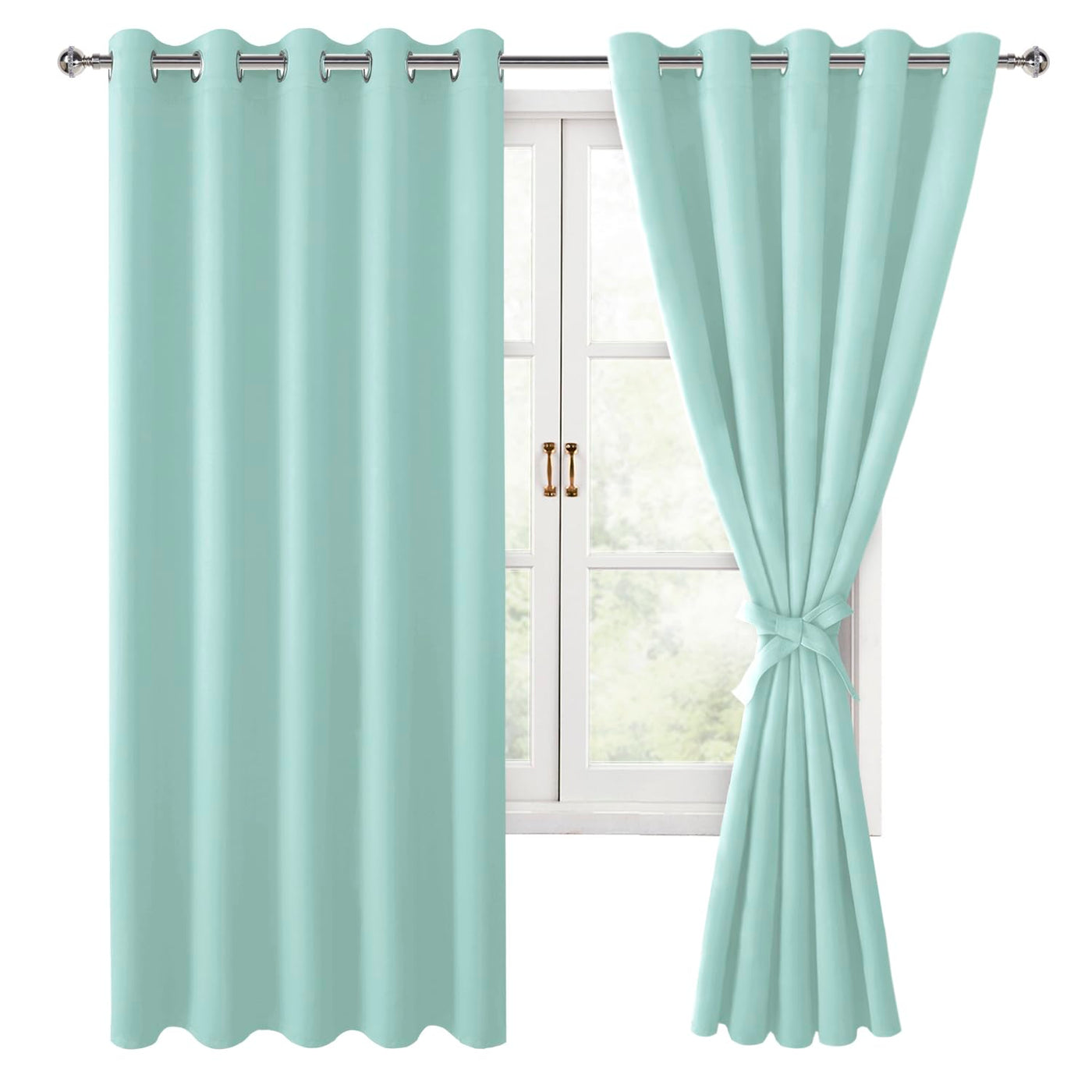 Hiasan Blackout Curtains For Bedroom, 60 X 63 Inches Length - Thermal Insulated & Energy Saving Window Curtains For Living Room, 2 Drape Panels Sewn With Tiebacks, Aqua