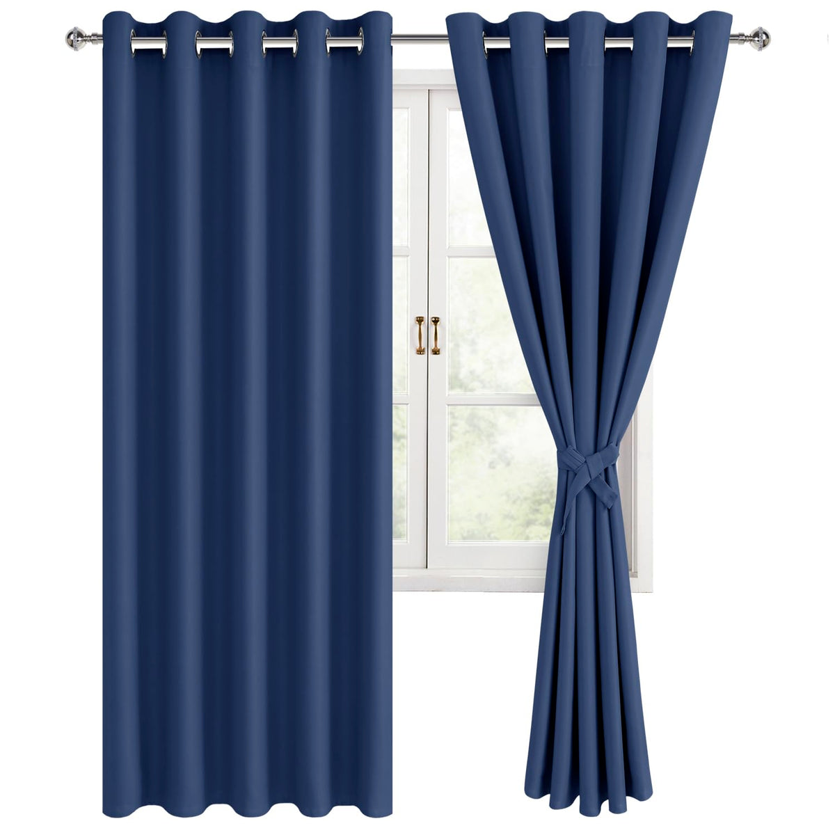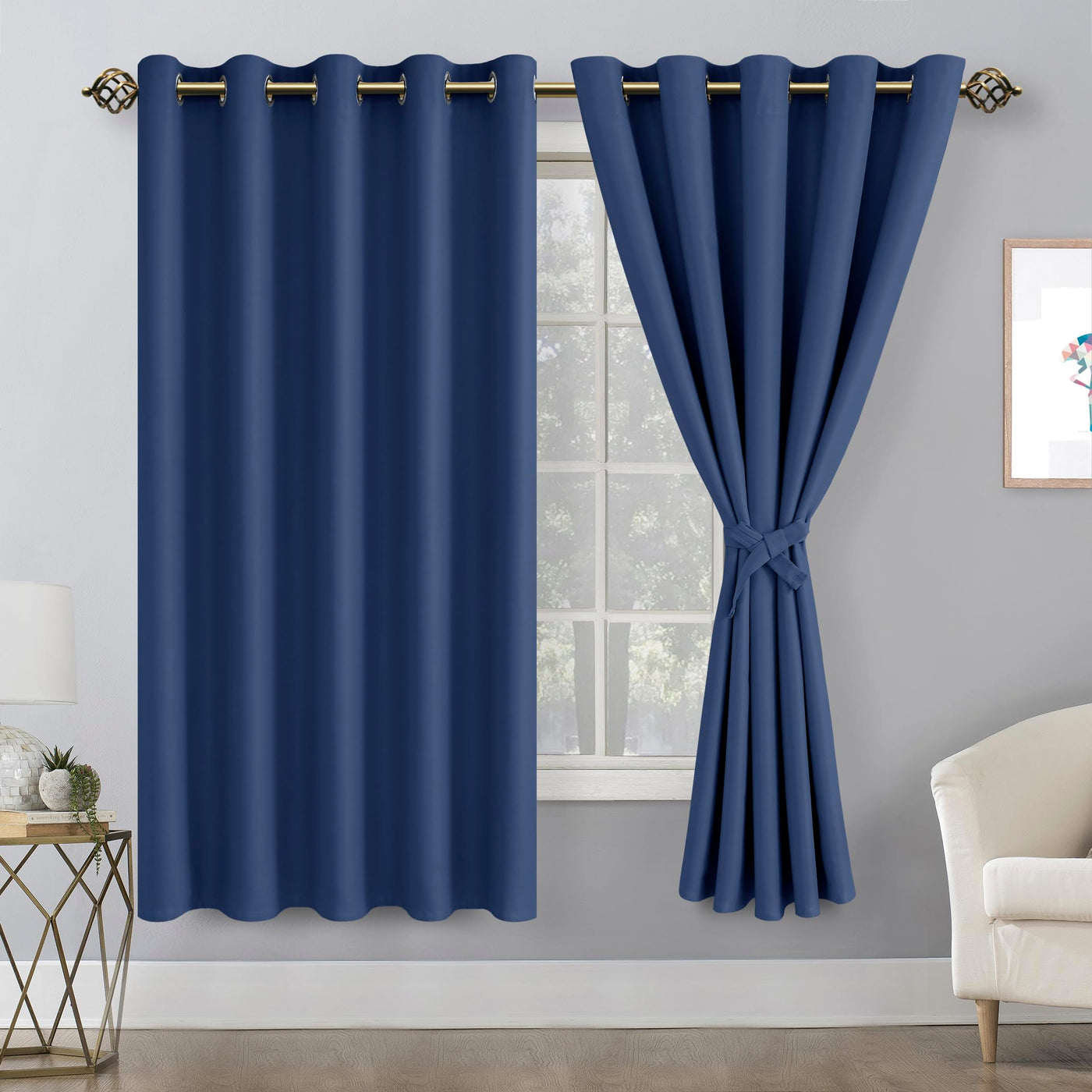 Hiasan Blackout Curtains For Bedroom, 60 X 63 Inches Length - Thermal Insulated & Energy Saving Window Curtains For Living Room, 2 Drape Panels Sewn With Tiebacks, Navy