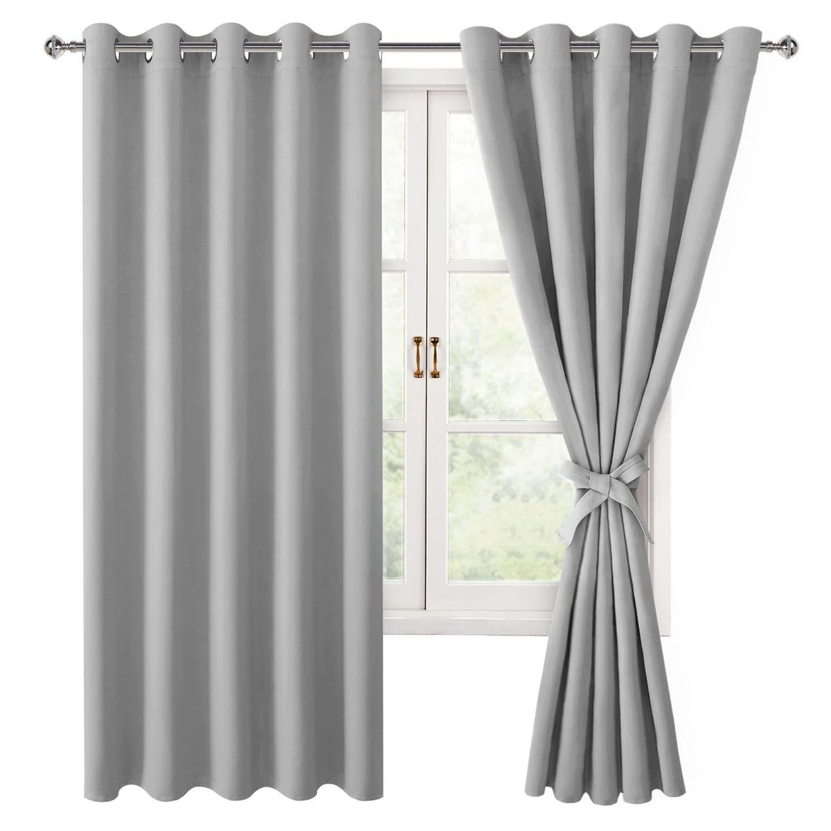 Hiasan Blackout Curtains For Bedroom, 60 X 63 Inches Length - Thermal Insulated & Light Blocking Window Curtains For Living Room, 2 Drape Panels Sewn With Tiebacks, Silver Grey