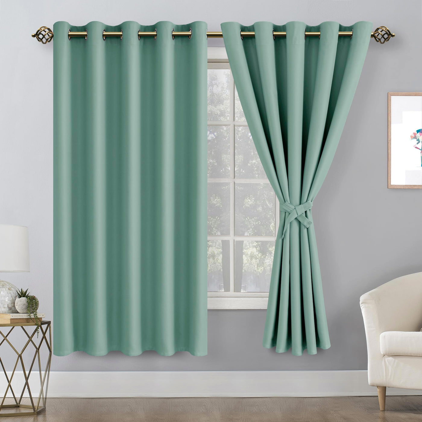 Hiasan Blackout Curtains For Bedroom, 60 X 63 Inches Length - Thermal Insulated & Noise Reducing Window Curtains For Living Room, 2 Drape Panels Sewn With Tiebacks, Sage Green