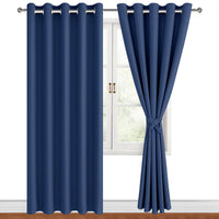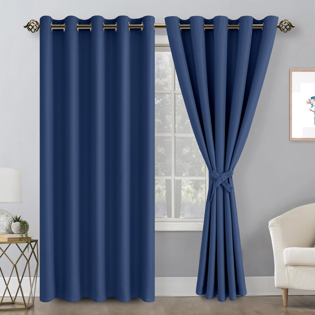 Hiasan Blackout Curtains For Bedroom, 60 X 84 Inches Long - Thermal Insulated & Energy Saving Window Curtains For Living Room, 2 Drape Panels Sewn With Tiebacks, Navy