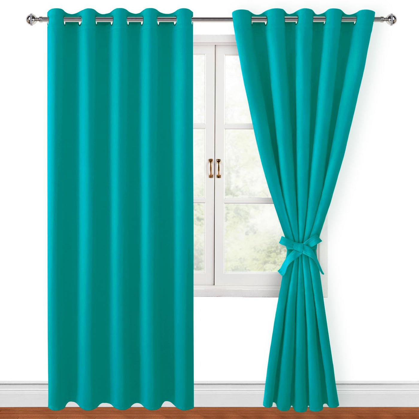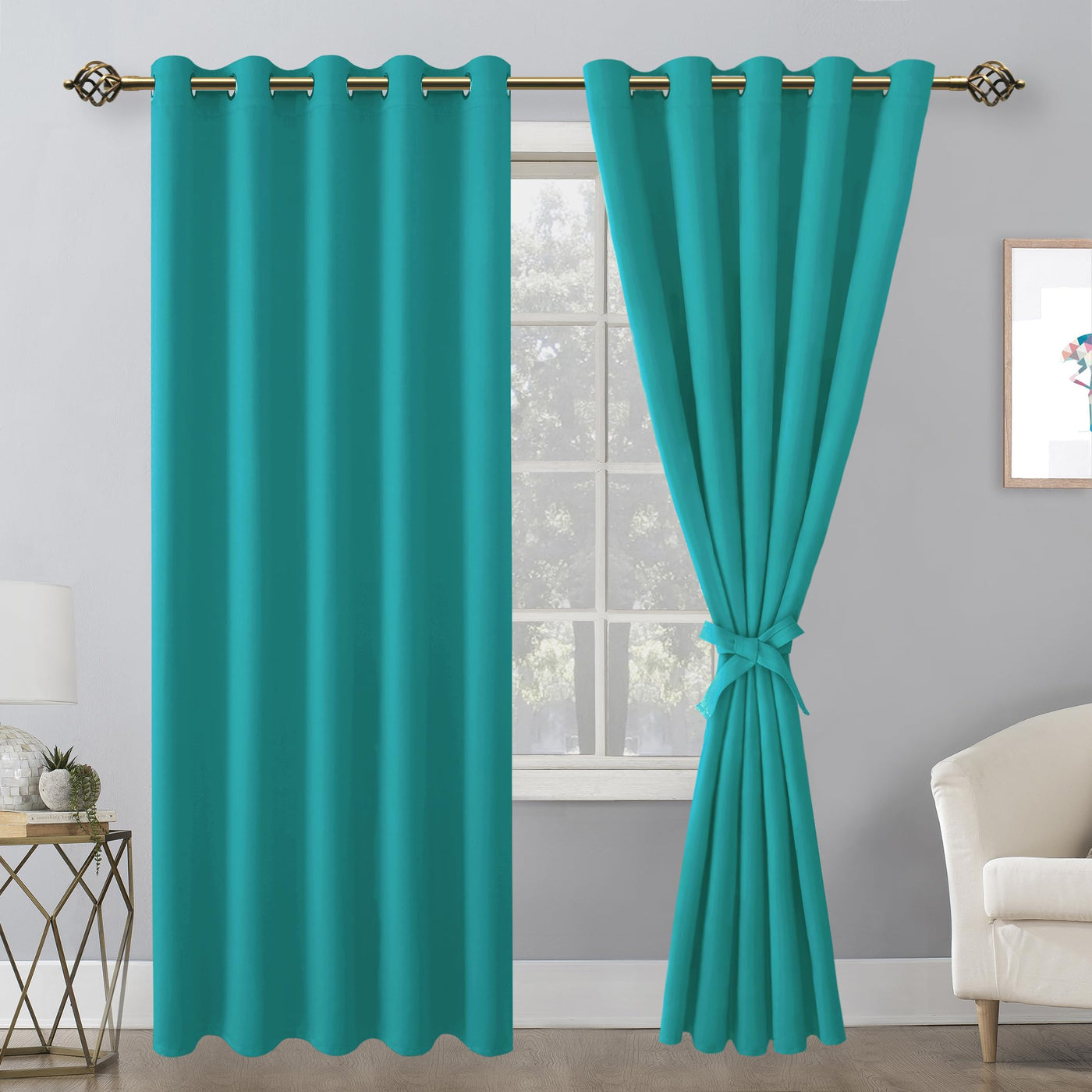Hiasan Blackout Curtains For Bedroom, 60 X 84 Inches Long - Thermal Insulated & Energy Saving Window Curtains For Living Room, 2 Drape Panels Sewn With Tiebacks, Peacock Teal
