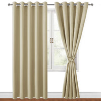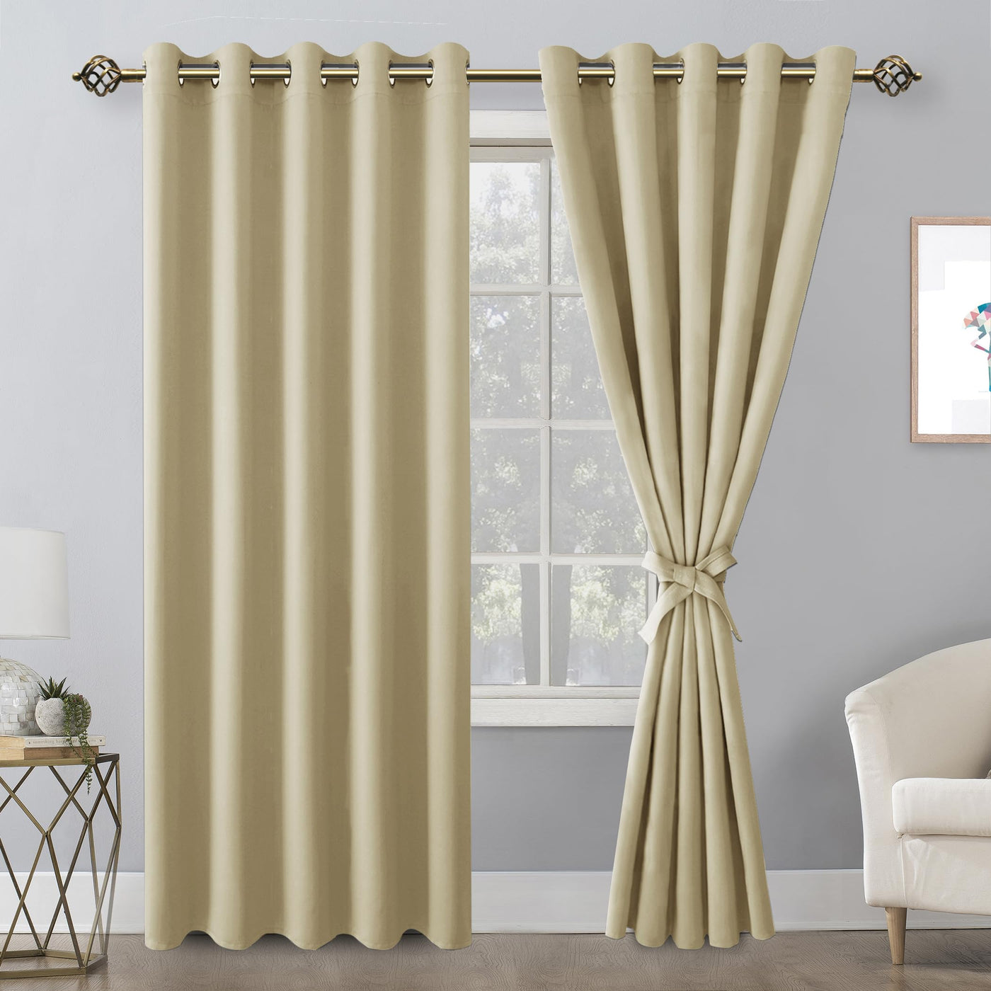Hiasan Blackout Curtains For Bedroom, 60 X 84 Inches Long - Thermal Insulated & Light Blocking Window Curtains For Living Room, 2 Drape Panels Sewn With Tiebacks, Light Beige