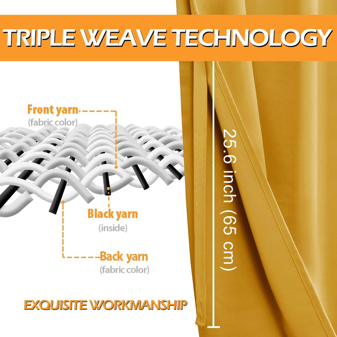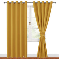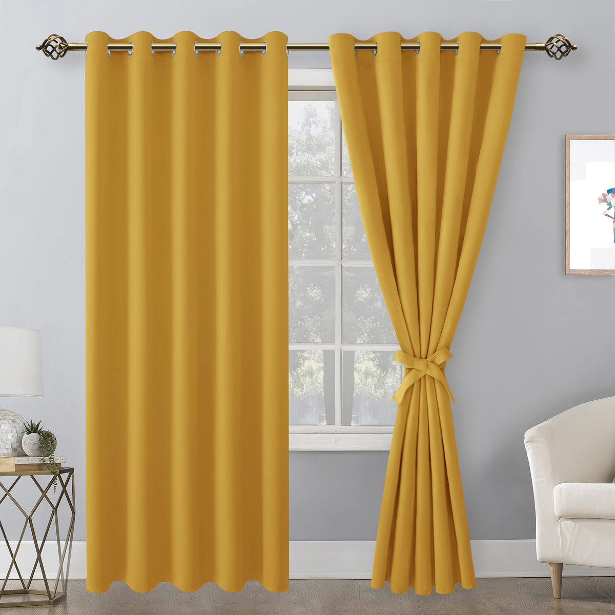 Hiasan Blackout Curtains For Bedroom, 60 X 84 Inches Long - Thermal Insulated & Light Blocking Window Curtains For Living Room, 2 Drape Panels Sewn With Tiebacks, Mustard Yellow