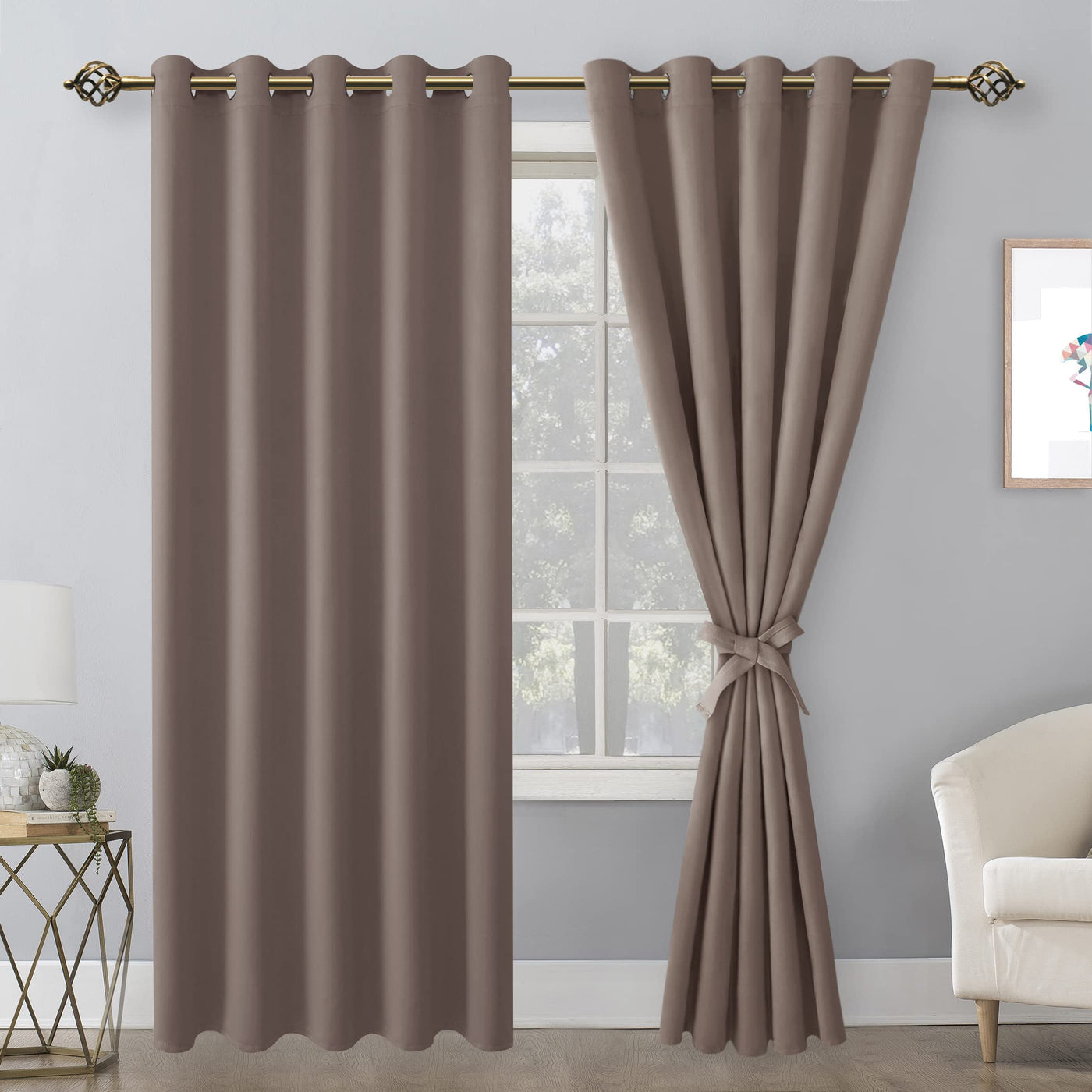 Hiasan Blackout Curtains For Bedroom, 60 X 84 Inches Long - Thermal Insulated & Light Blocking Window Curtains For Living Room/Kids Room, 2 Drape Panels Sewn With Tiebacks, Tan
