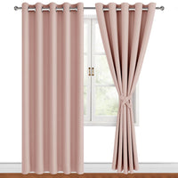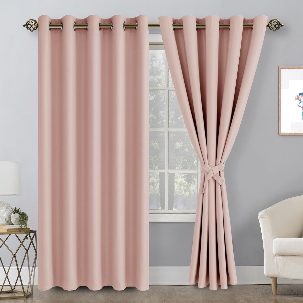 Hiasan Blackout Curtains For Bedroom, 60 X 84 Inches Long - Thermal Insulated Noise Reducing Window Curtains For Living Room, 2 Drape Panels Sewn With Tiebacks, Blush