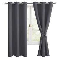 Hiasan Blackout Curtains For Bedroom, Thermal Insulated, Light Blocking, Noise Reducing Window Curtain Panels, Tiebacks Included, Set Of 2, Grommet Top (Dark Grey, Width 38 Inch X Length 72 Inch)