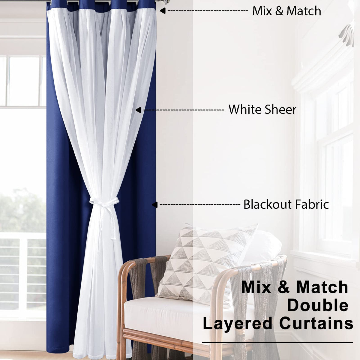 Hiasan Mix And Match Curtains Are Made Of High-Quality Polyester Fabric With Sheer Panel Inside. Using These Double Layer Curtains To Decorate Your Window, Adding Elegance And Holy To Your Room. Featuring Grommet Top Design Make It Easy To Hang And Slide On Standard Rods. Luxury Blackout Curtains Are Perfect For Living Room, Bedroom, Nursury, Kids Room And More. Tie Up The Blackout Panels Can Let Natural Light In While Maintaining Privacy In Your Home. Luxury Curtains Complement With Any Home Decor.Package Includes: Each Package Includes 2 Blackout Curtain Panels With White Voile. 52 Inch Wide Per Panel And Two Panel Measuring 104 Inch We Have Various Sizes And Colors To Choose&Nbsp;Multipurpose: Mix &Amp; Match Curtain Sets Can Be Used In Various Ways. Sunlight Will Pass Through The Light Filtering Curtains When You Tie The Blackout Panels. Idea For Living Room, Bedroom, Kids Room, Office, Nursery And Moreeasy Care Instructions: &Nbsp;&Nbsp;&Nbsp; Machine Washable In Cold Water &Nbsp;&Nbsp;&Nbsp; Do Not Bleach &Nbsp;&Nbsp;&Nbsp; Iron At Low Heat If Needed