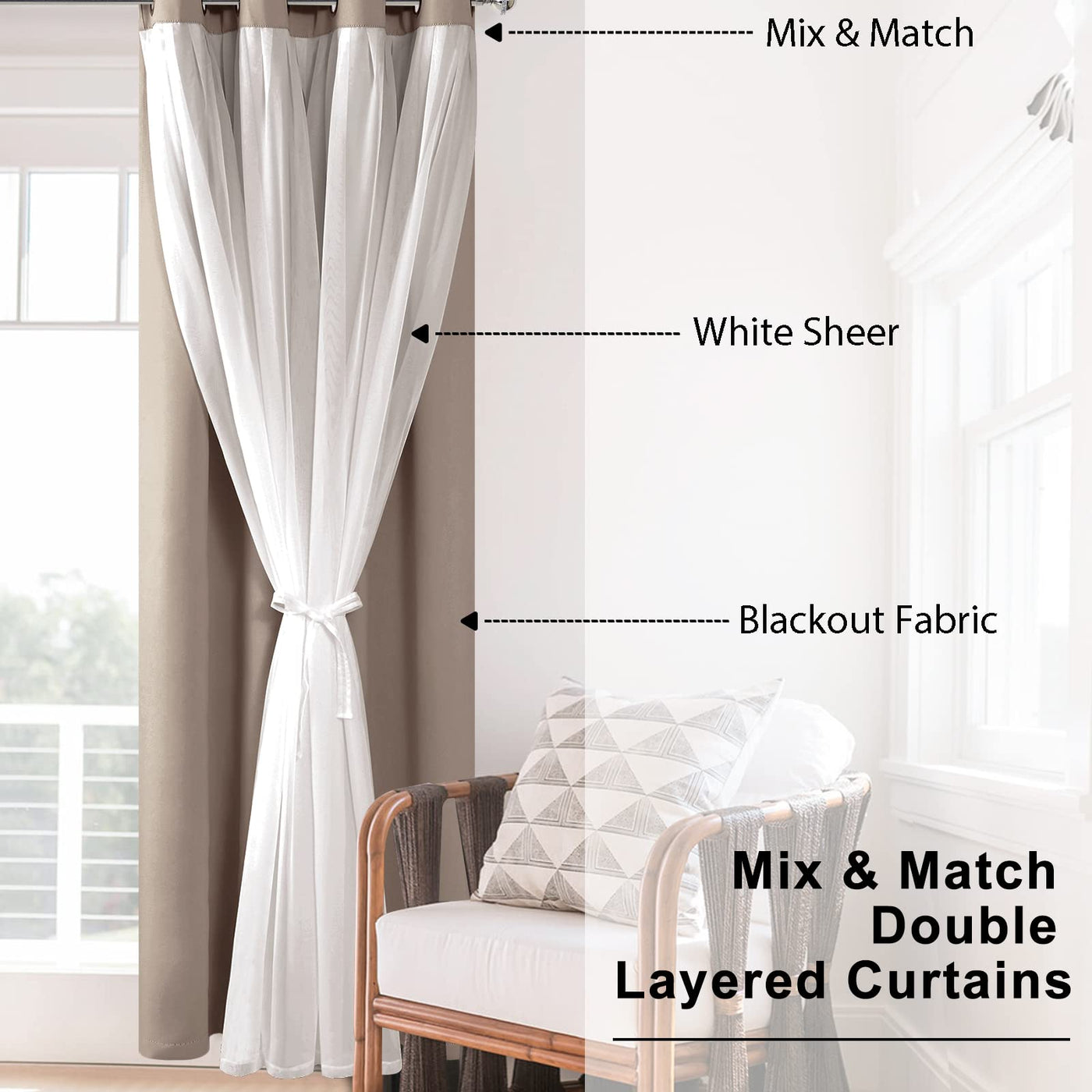 Hiasan Blackout Curtains With Sheer Overlay, Mix & Match Double Layer Thermal Insulated Privacy Grommet Window Curtains For Bedr