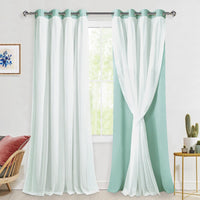 Hiasan Blackout Curtains With Sheer Overlay, Mix & Match Double Layer Thermal Insulated Room Darkening Curtains For Bedroom, Liv