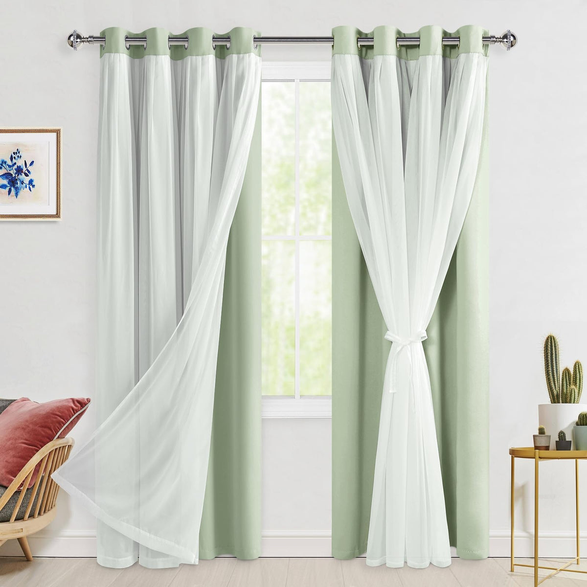 Hiasan Blackout Curtains With Sheer Overlay, Thermal Insulated Mix & Match Double Layer Room Darkening Curtains For Bedroom, Liv