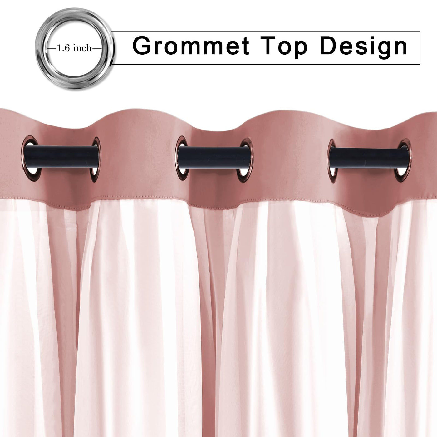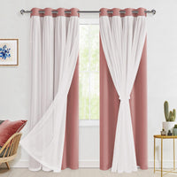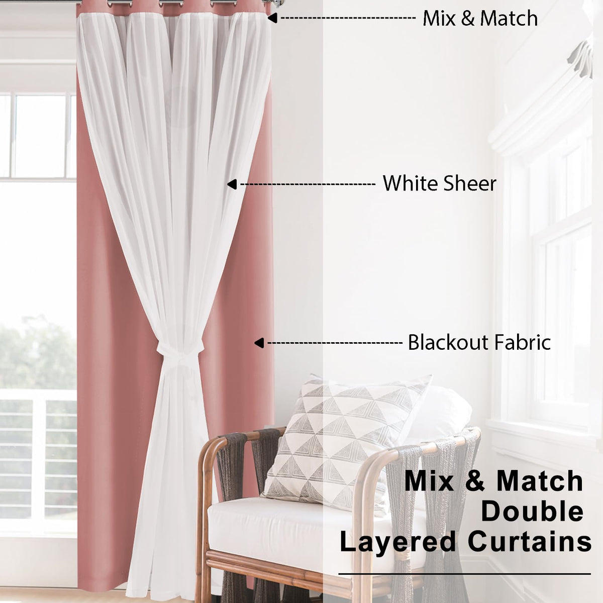 Hiasan Blackout Curtains With Sheer Overlay,Thermal Insulated Mix & Match Double Layer Room Darkening Curtains For Bedroom,Livin