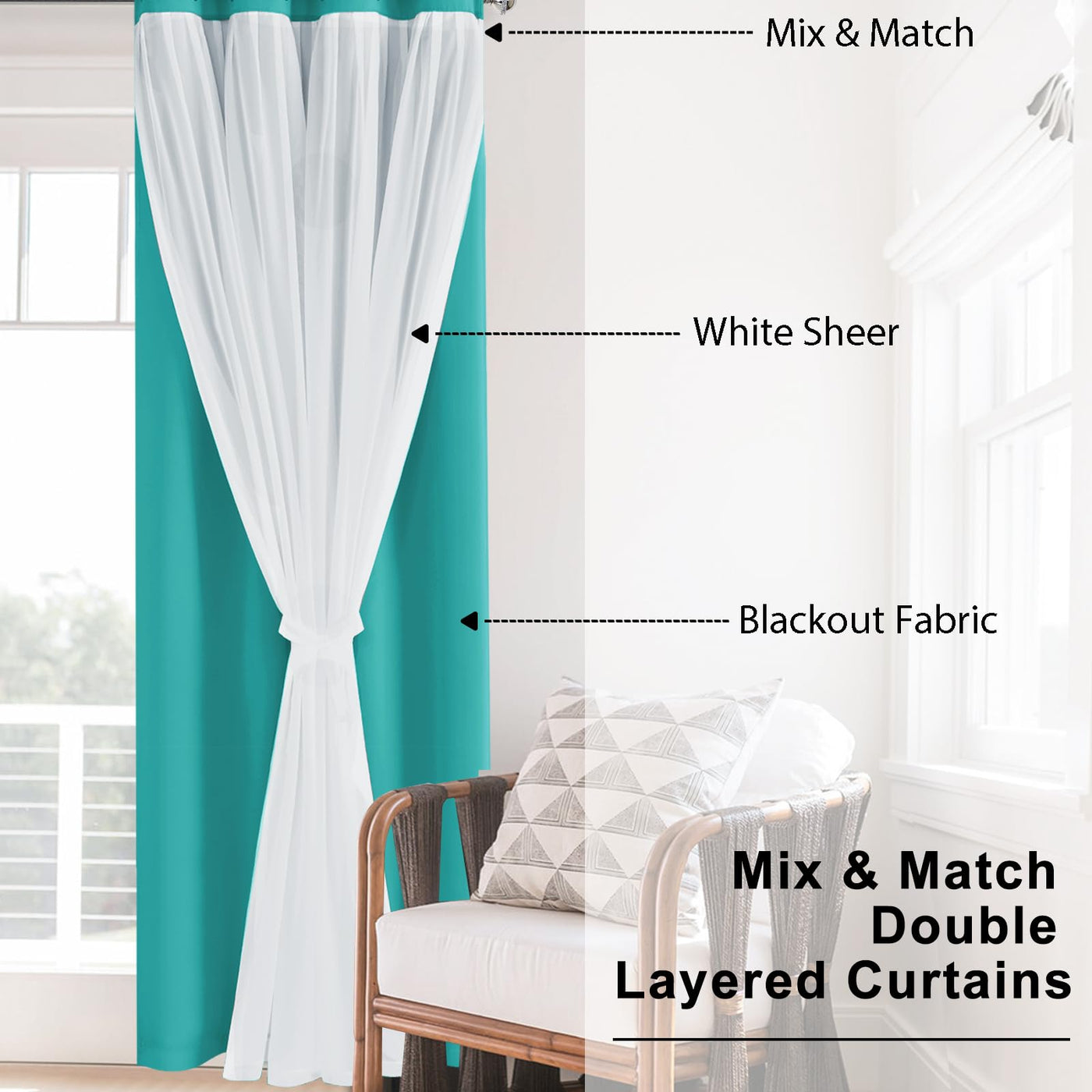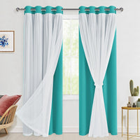 Hiasan Blackout Curtains With Sheer Overlay,Thermal Insulated Mix&Match Double Layer Room Darkening Curtains For Bedroom,Living