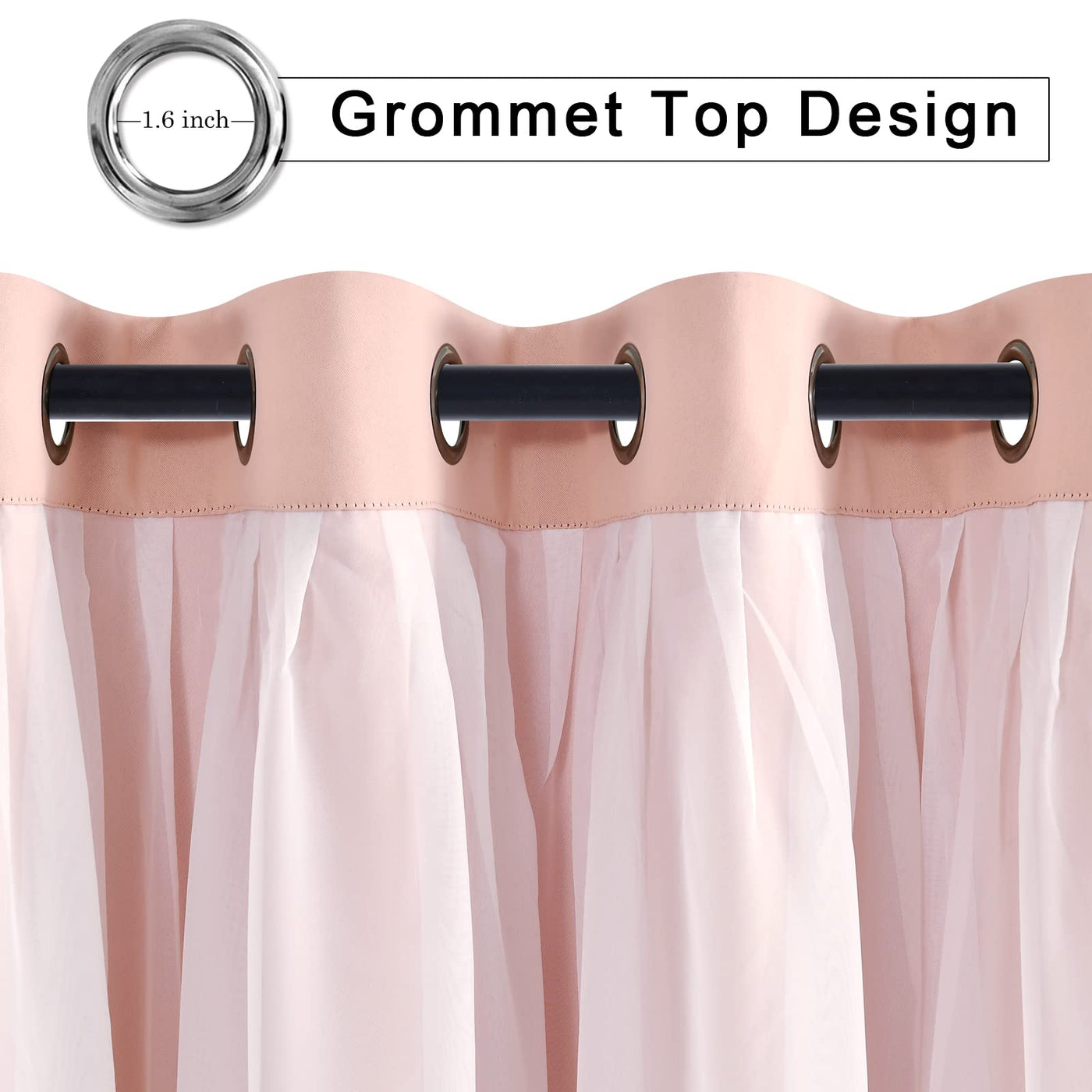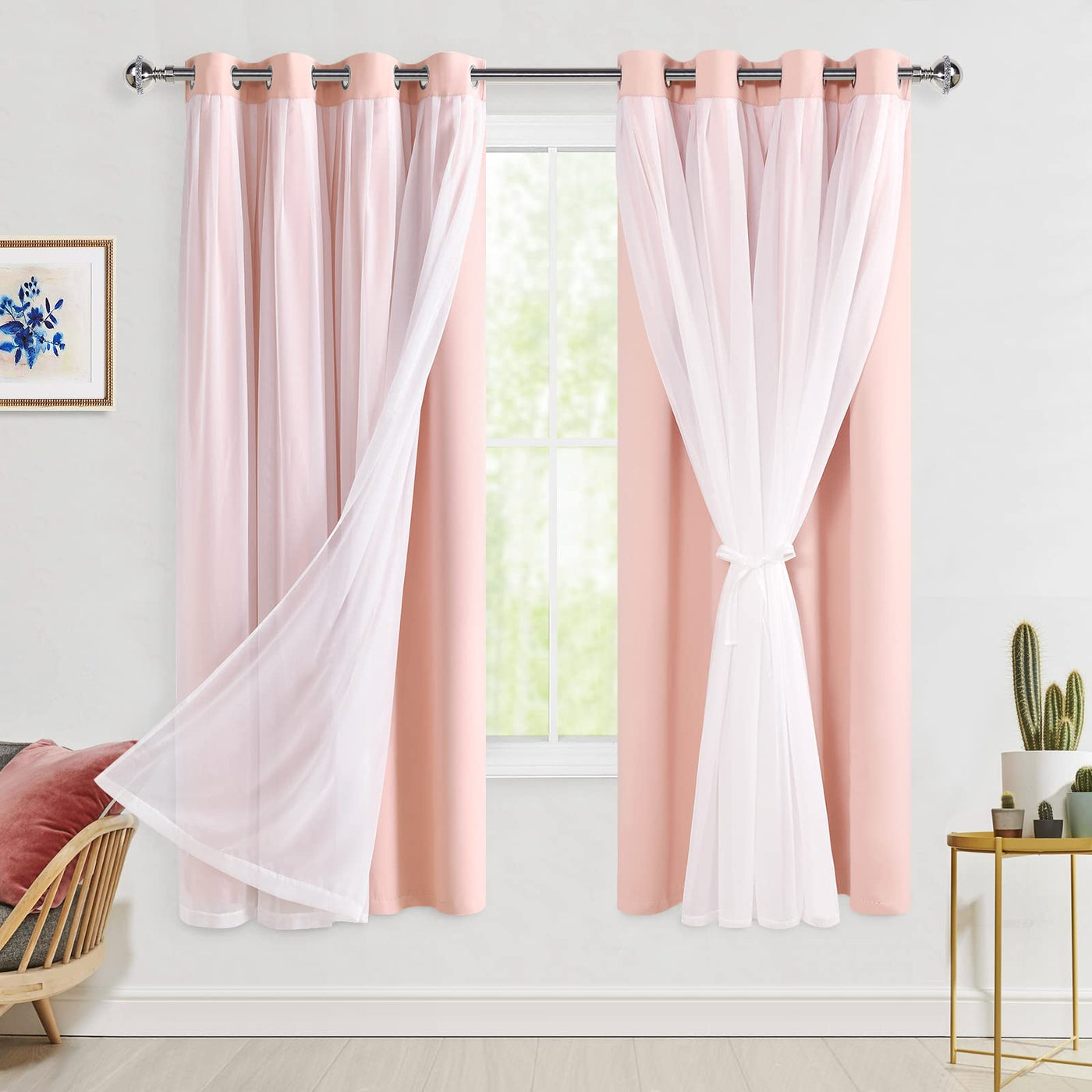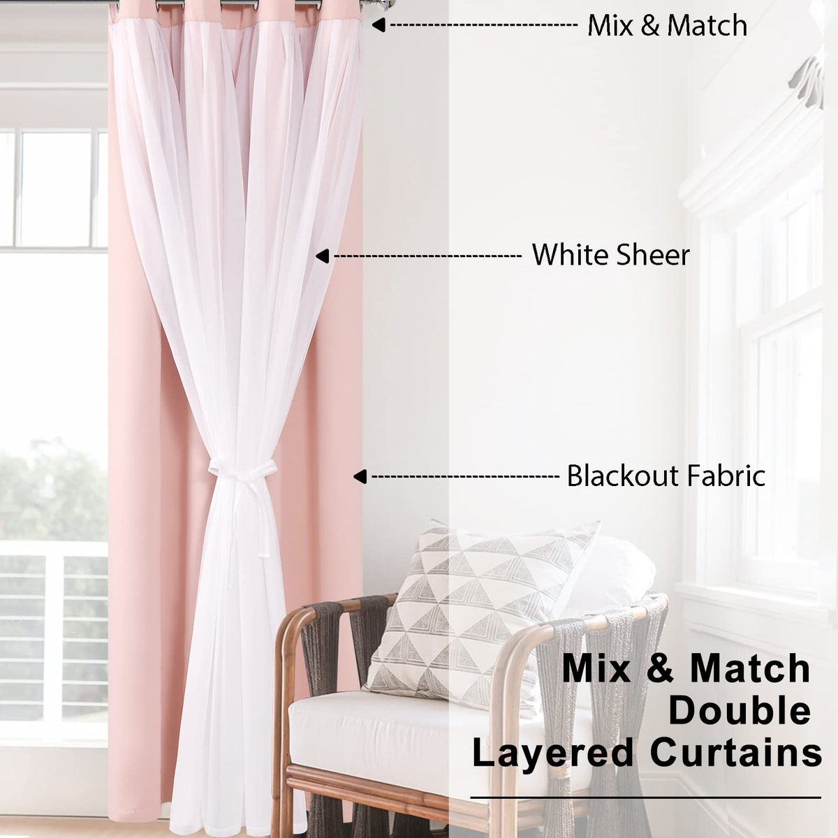 Hiasan Blackout Curtains With Sheer Overlay, Thermal Insulated Mix & Match Double Layer Room Darkening Window Curtains For Bedro